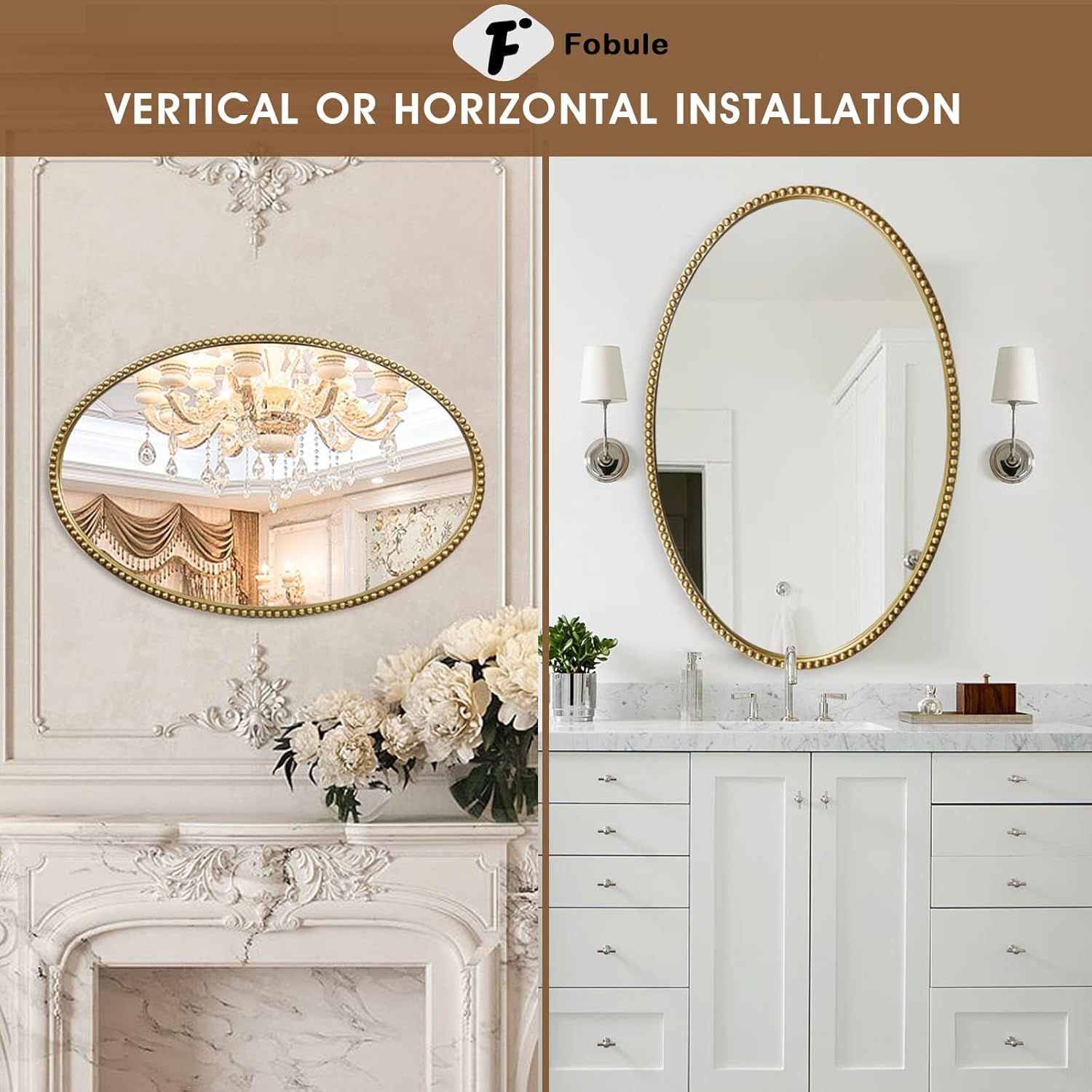 - Vertical or Horizontal Installation - The anti-corrosive hanging system of the oval gold metal mirror come with two pre-installed reinforced hanging clips that is sturdy enough to handle the mirror. We've thrown in screws as well to make it easier for you. The wonderful mirror can be hung vertically or horizontally. (Heavy and Large Mirror, two people is recommended during installation. )