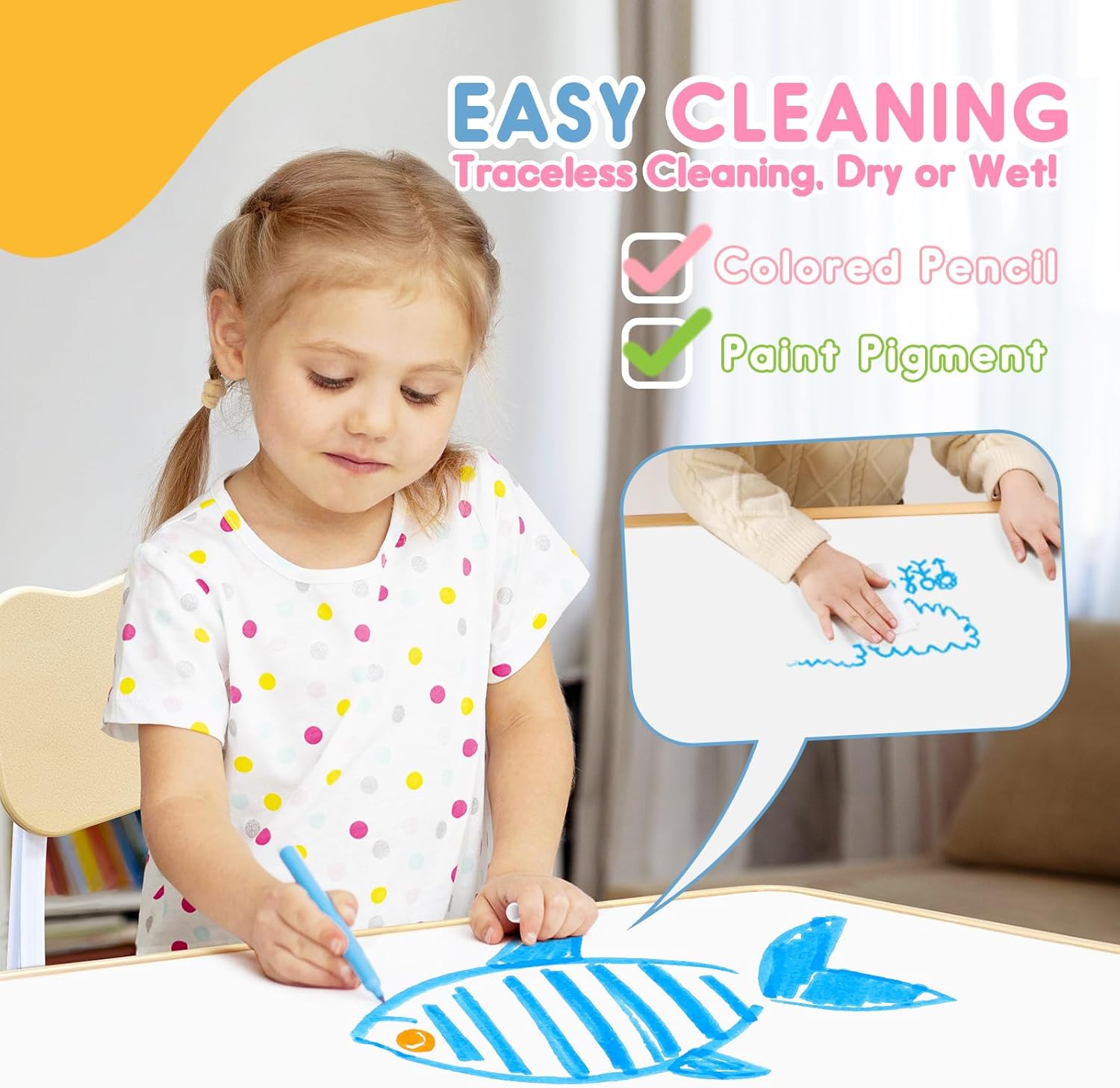 - š«š¶š¶š«š³š¬-šš¹š°š¬šµš«š³š šŗš¼š¹ššØšŖš¬: Get Creative! Our kids' table and 2-chair set includes easy-to-follow assembly instructions. The wipeable tabletop allows kids to unleash their creativity using it as a canvas with watercolor pens, sparking their imagination. Besides, maintaining a clean space is super easy, ensuring a mess-free creative environment!