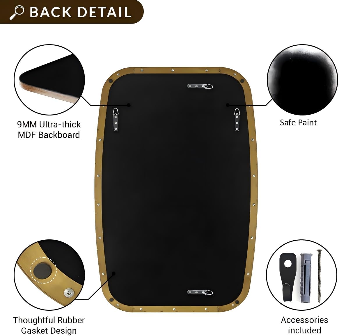 - Premium Quality: Crafted from heavy-duty SUS304 stainless steel, this oval mirror is sturdy, durable, anti-scratch, and rustproof; The no-distortion HD glass provides clear reflections; the MDF backboard ensures safety and strength against humidity