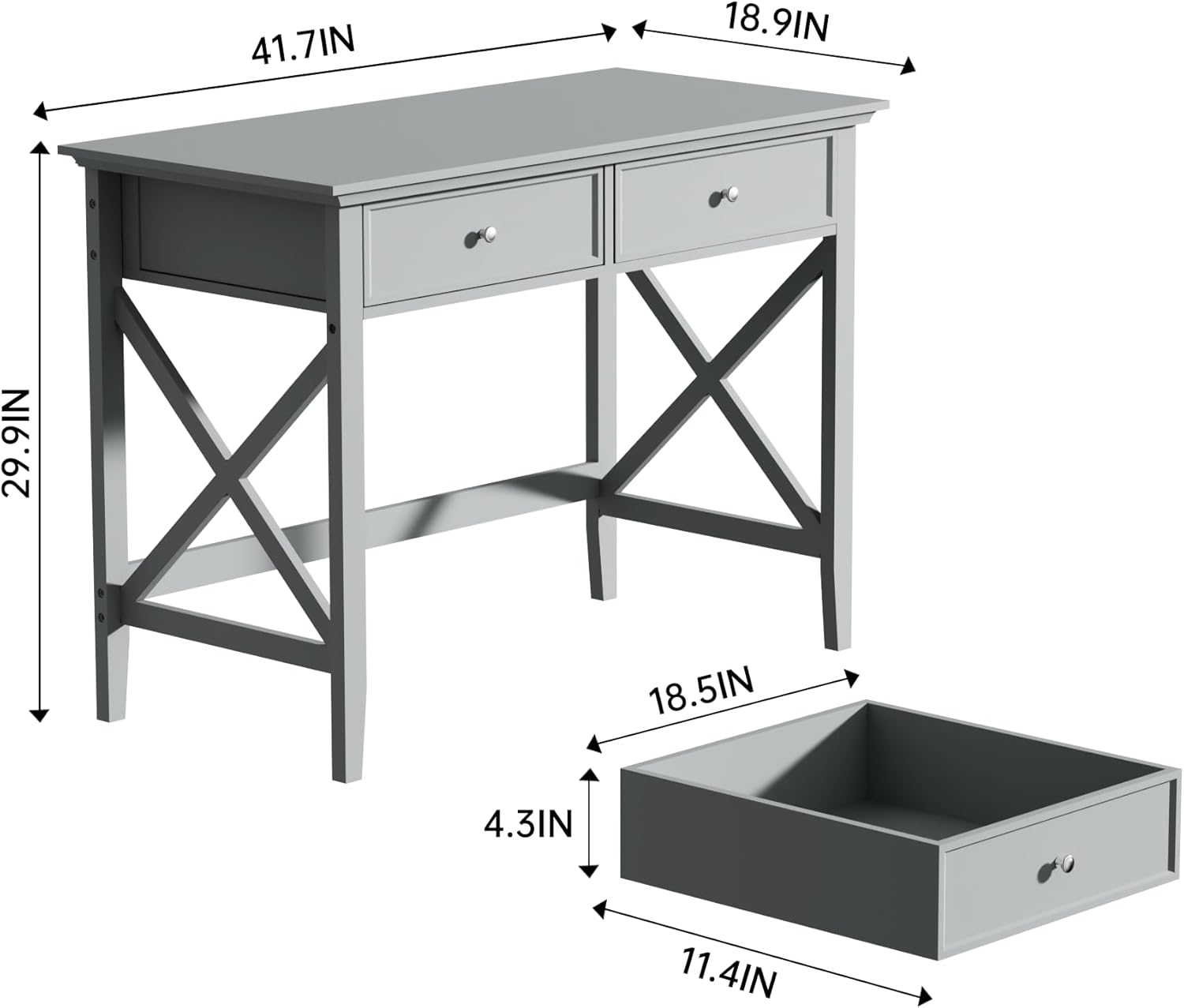 - Storage Drawers: Computer desk with 2 drawers can provide you with ample storage space to hold your books,keys, photos, and the modern desk can also collect your makeup tools;