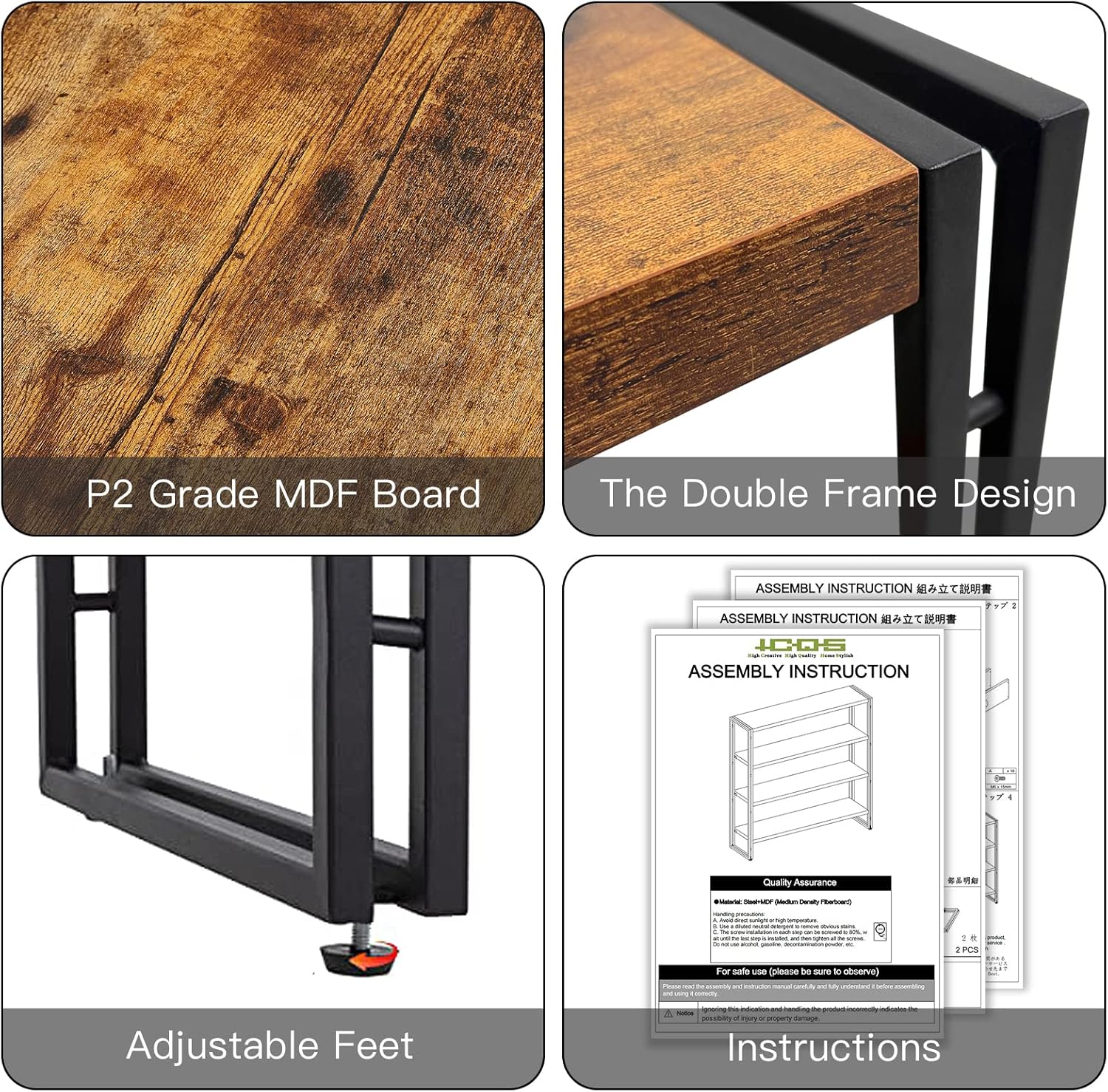 HCHQHS Bookshelf,4-Tier Industrial Bookcase,Rustic Wood and Metal Open Display Book Shelves Home Office,Bedroom Standing Shelf Unit,Horizontal Kitchen Shelf Organizer,Bathroom Storage Rack 47in