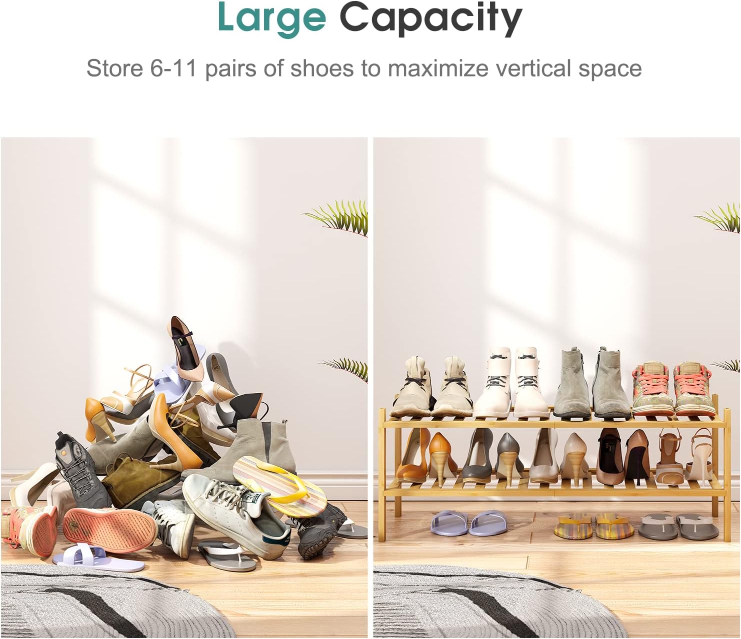 - Stackable Design: You can buy several shoe racks to create a big one to house your shoes