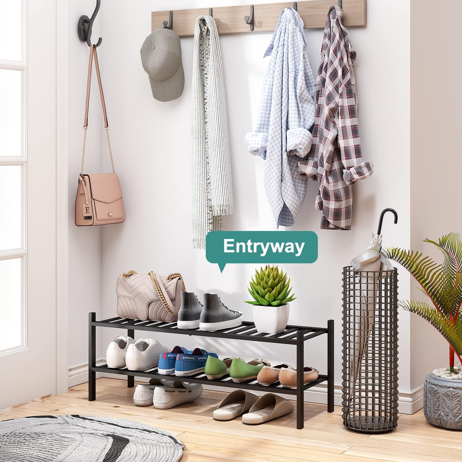Black Shoe Rack, 2-Tier Long Shoe Rack for Entryway, Bamboo Wood Shoe Shelf for Closet & Hallway, Long 33IN | Beautiful | Functional | Sturdy | Durable