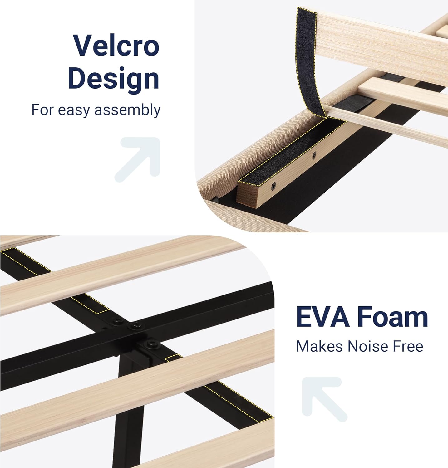 - Minimalist & Noise-Free: Bed frame queen size with a padded upholstered headboard, suitable for various decors; EVA mute bar prevents noise from friction, no squeaking or creaking