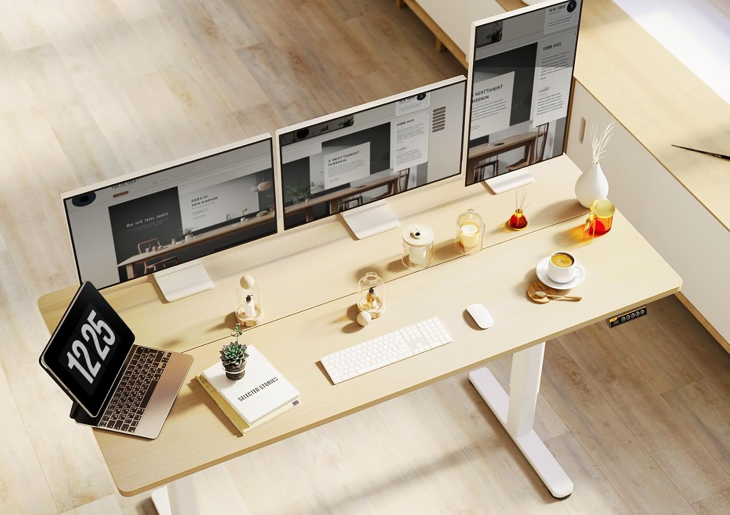 - Ergonomic Workspace: The spacious 63” x 24” adjustable desktop offers a roomy setup that promotes an ergonomic workspace.