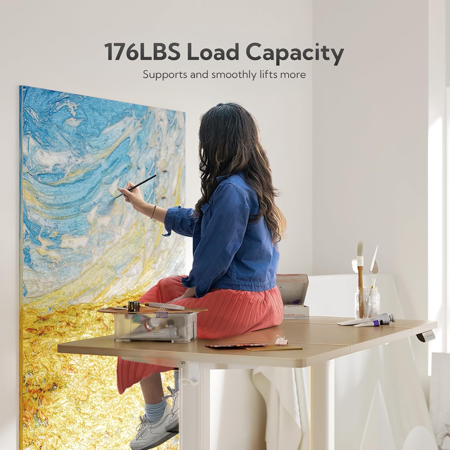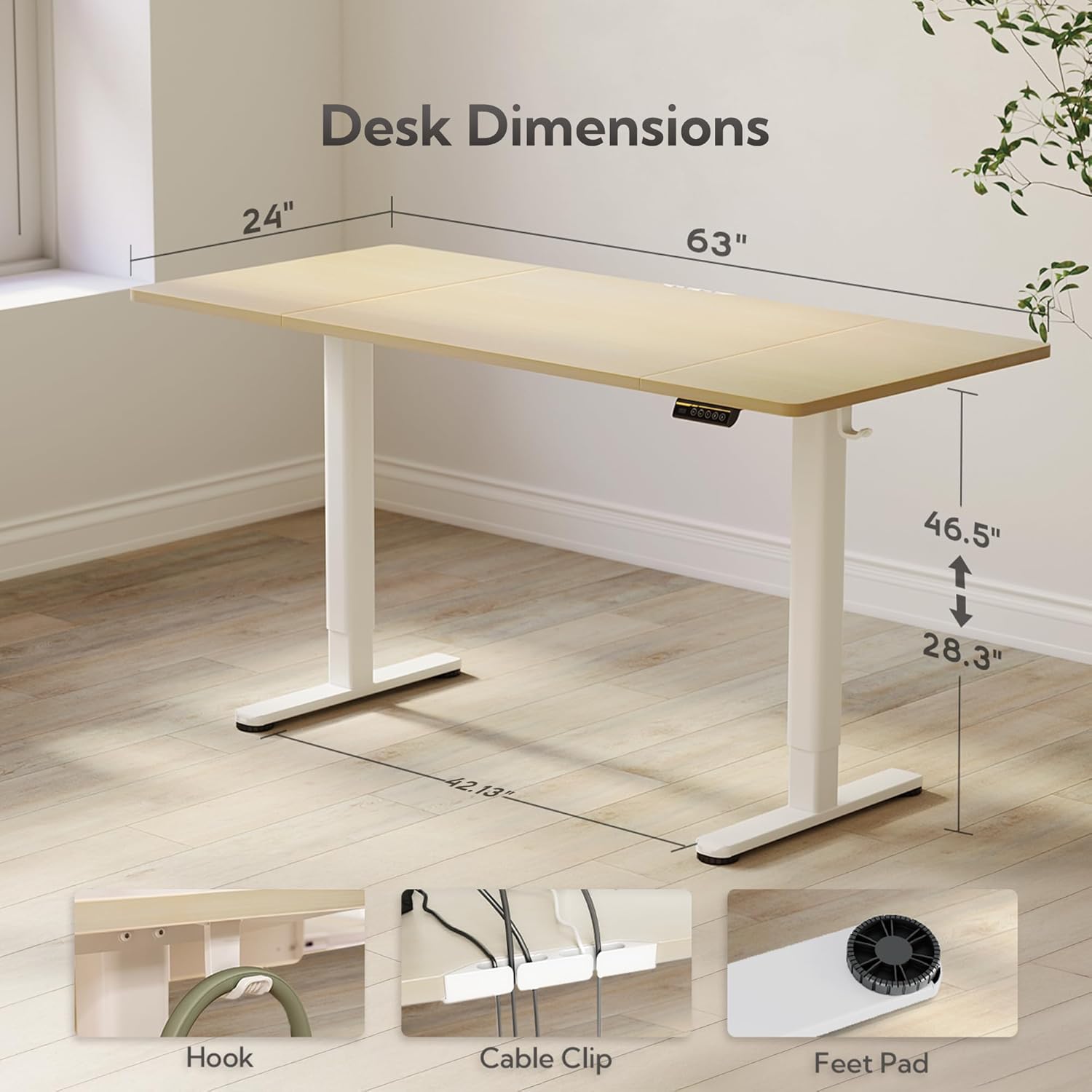 Claiks Electric Standing Desk, Adjustable Height Stand up Desk, 63x24 Inches Sit Stand Home Office Desk with Splice Board, White Frame/Nature Top