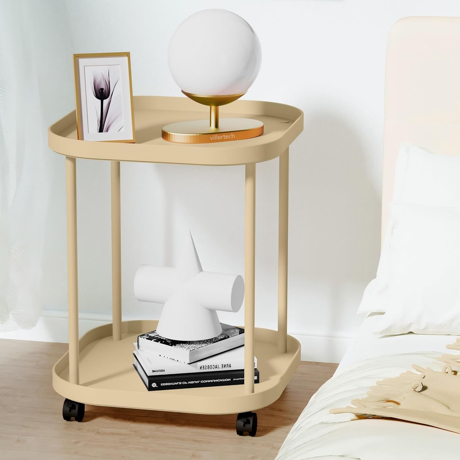 Side Table with Wheels, End Table Living Room Plastic Mobile Sofa Side Table Small Night Stand Bedroom Khaki