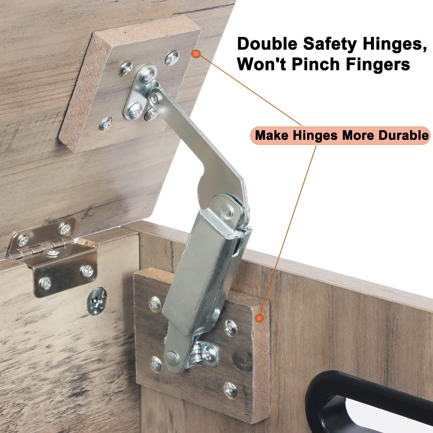 - 2 Safety Hinges, Steadier - The large storage chest is equipped with 2 advanced safety hinges that can stop at any position, allowing you to open and close it slowly without closing suddenly and pinching your fingers. The maximum opening angle is 90°