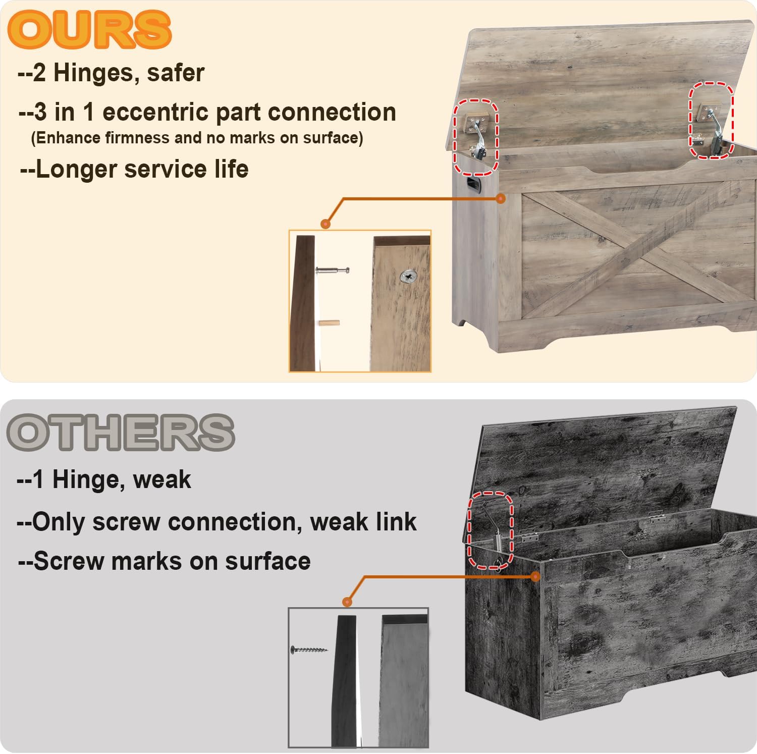 - High Load Capacity - Made of particleboard, the wooden storage chest supports up to 300 lb. In addition, Gel Bumpers under the hinged cover not only dampen accidental impacts but also provide more surface protection and noise suppression