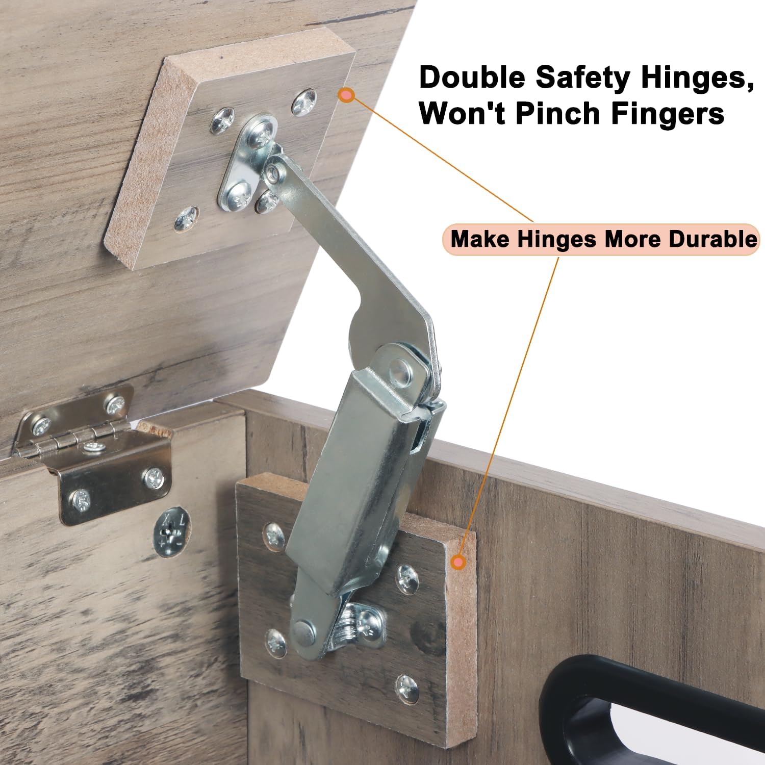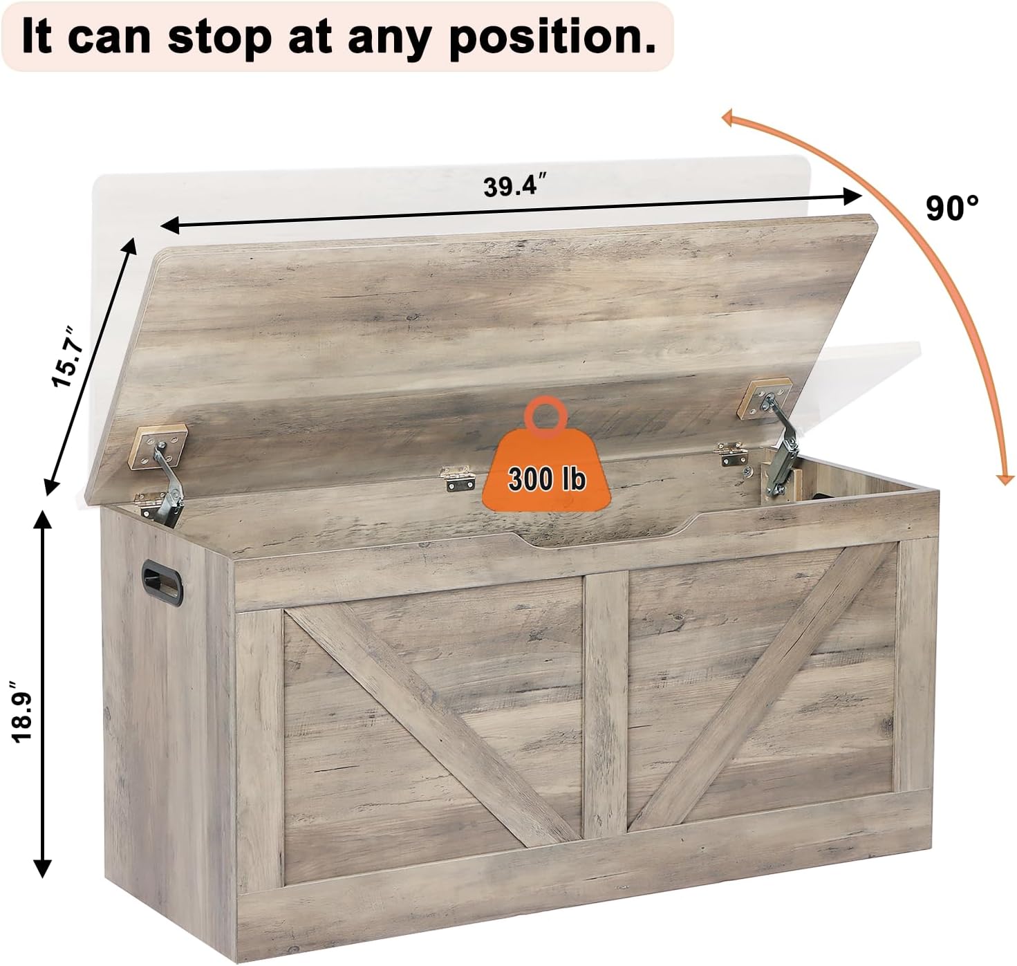 - 2 Safety Hinges - The large storage chest is equipped with 2 advanced safety hinges that can stop at any position, allowing you to open and close it slowly without closing suddenly and pinching your fingers. The maximum opening angle makes 90°