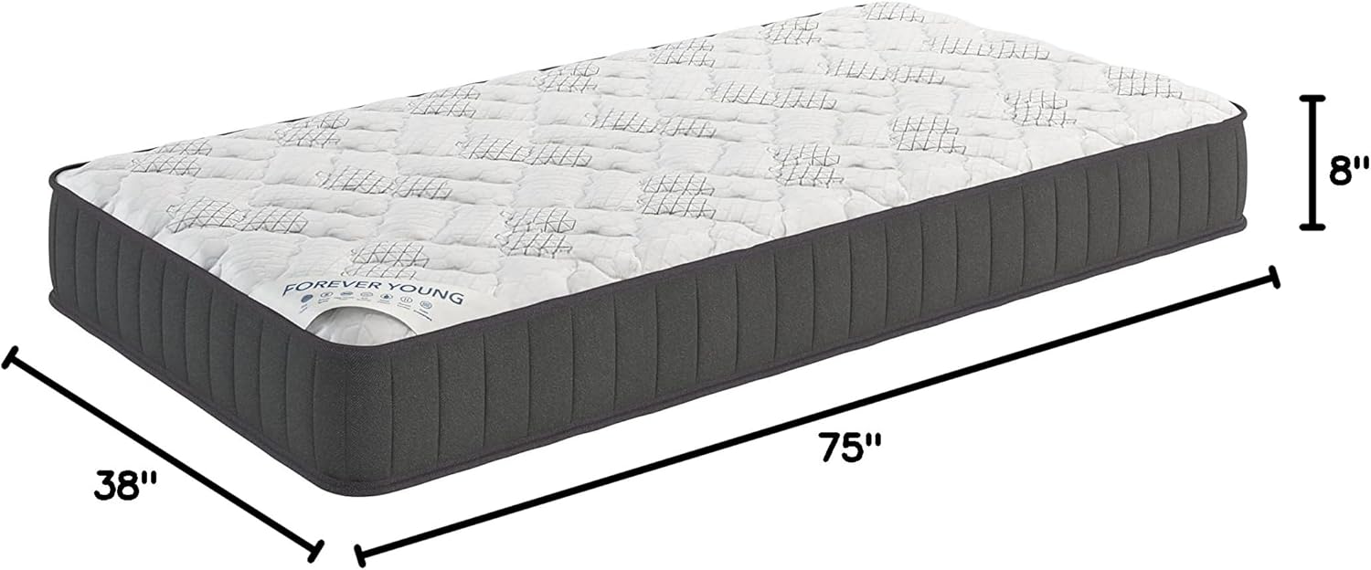 Ottomanson 9" Hybrid Twin Mattress - Rock Hard Feel - Made in USA - Individually Pocketed Coils & CertiPUR-US Foam - Fiberglass-Free - Bed in a Box