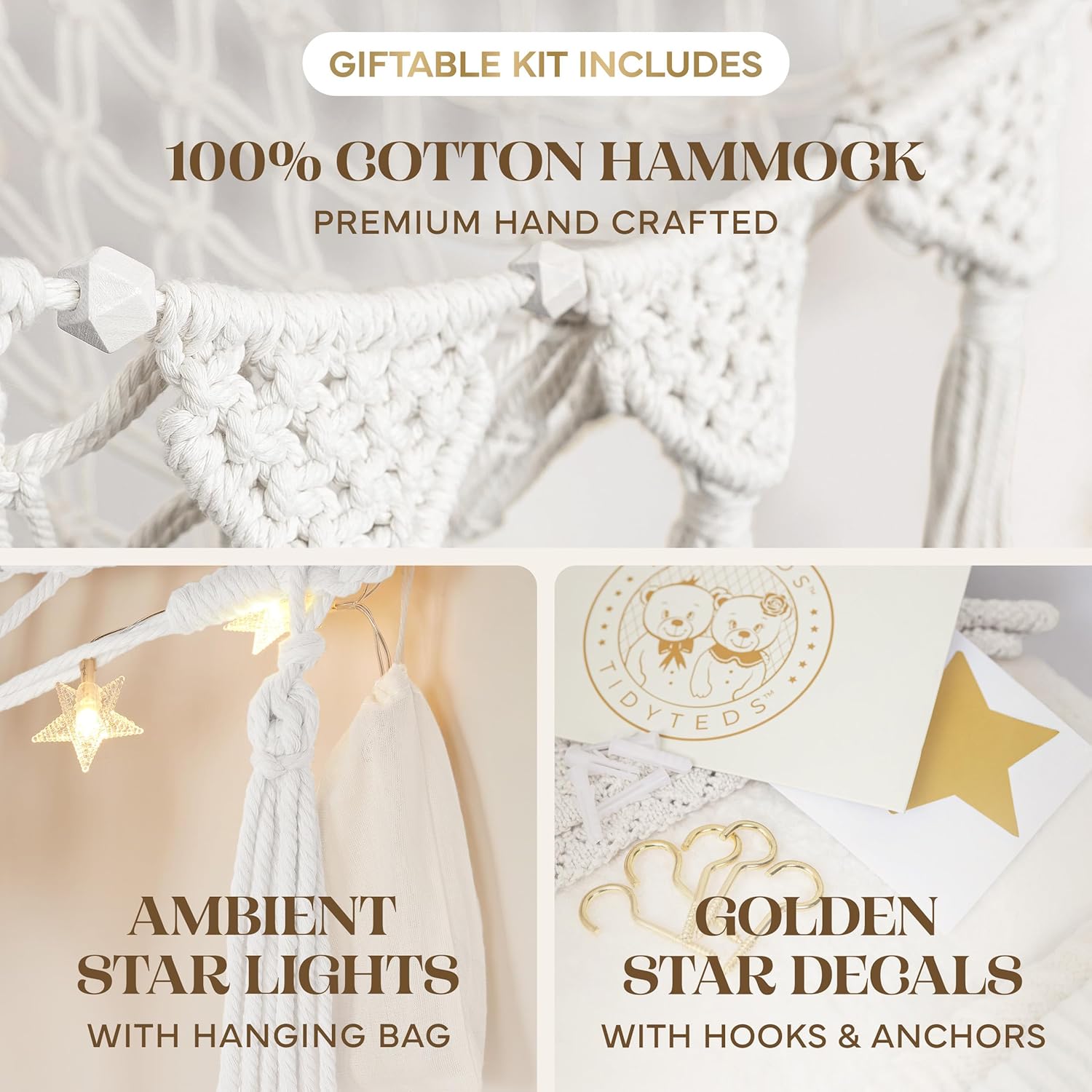 - BEAUTIFULLY HANDMADE Stuffy Hammock With Warm White Star Lights Lights and Pretty Star Decals . Tidy with Style
