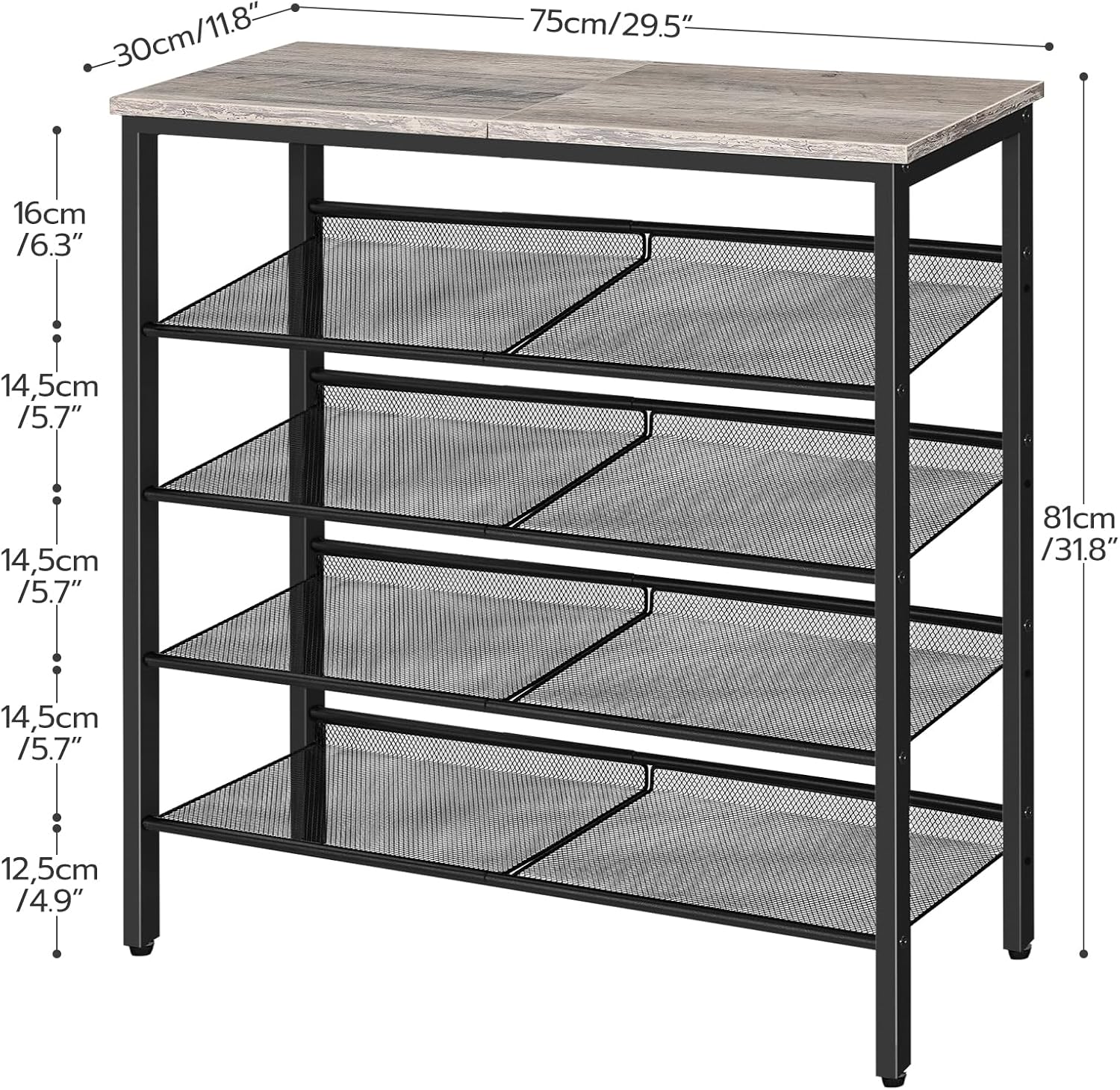 - Solid, Stable, Safe: This shoe rack is constructed of premium particleboard and metal mesh shelves. The top loads up to 44 lb and each mesh bears up to 22 lb, so you can enjoy safe use of this shoe rack. Of course you can expect long serviceability because the frame is hard to bent and age