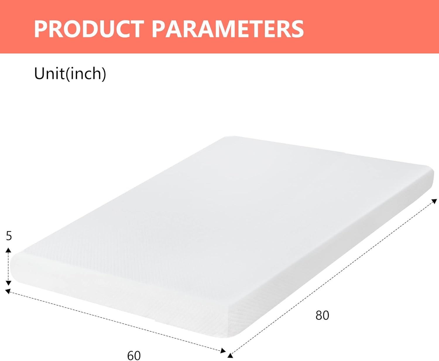 - DURABLE & SAFE: This 5" mattress pairs 1" gel memory foam with 4" high-density base foam for stable support. CertiPUR-US certified and made without harmful chemicals or heavy metals.