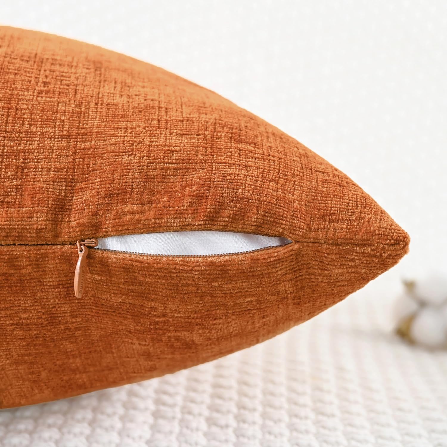 CaliTime Fall Throw Pillow Covers Decorative 18 X 18 Inches Pack of 4 Cozy Chenille Cushion Cases for Couch Sofa Bed Living Room Home Burnt Orange