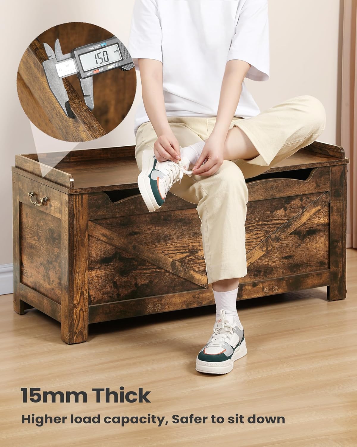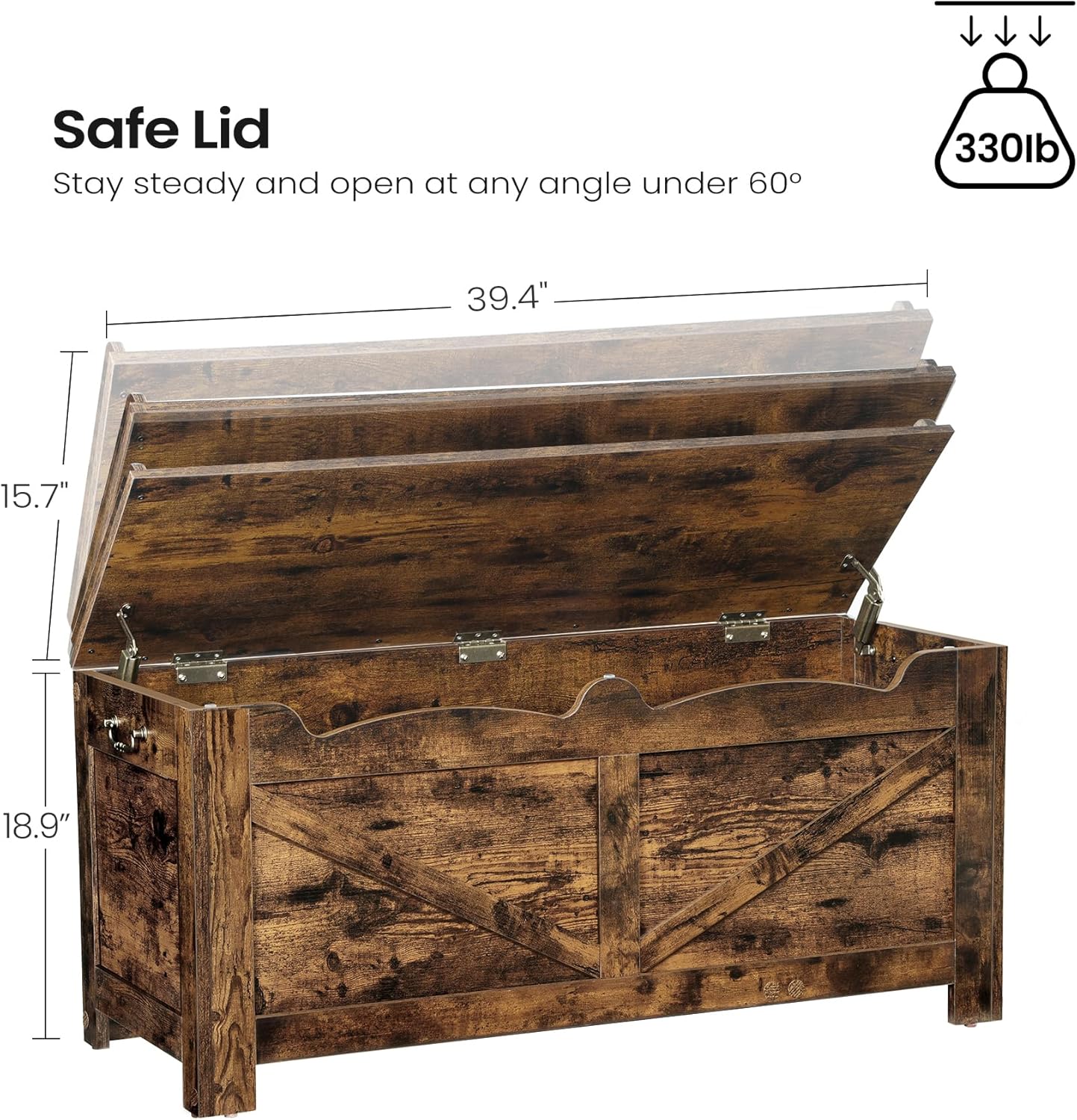 39.4" Storage Chest, Extra Large Storage Trunk with 2 Safety Hinges, Wooden Box Bench, Lift-Top Organizer Chest, Shoe Bench for Entryway, Bedroom, Living Room, Rustic Brown SB04501X