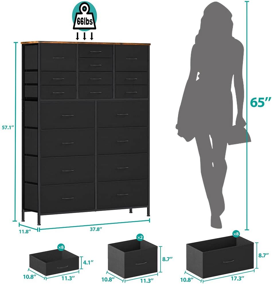 Dresser for Bedroom with 18 Drawers, Tall Fabric Storage Dresser, Chest of Drawers for Closet, Nursery, Bedside, Living Room, Laundry, Entryway, Hallway (Black)