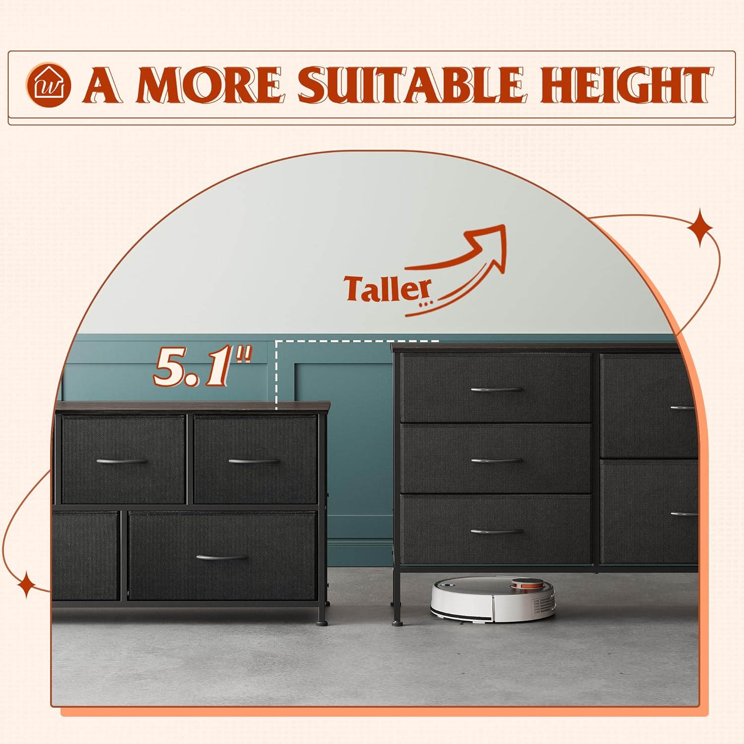WLIVE Dresser for Bedroom with 5 Drawers, Wide Bedroom Dressers with Drawer Organizers, Chest of Drawers, Fabric Dresser for Living Room, Closet, Hallway, Charcoal Black