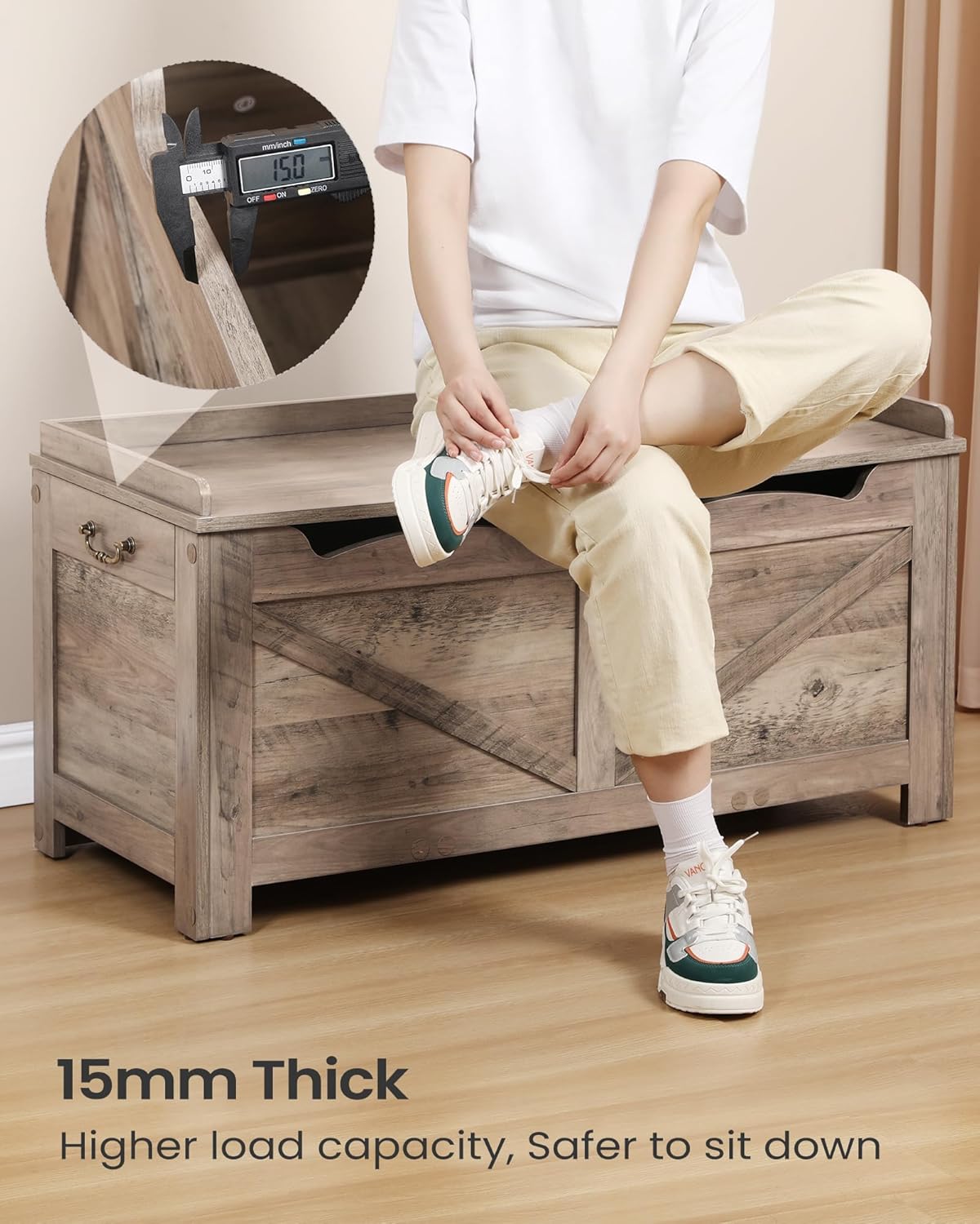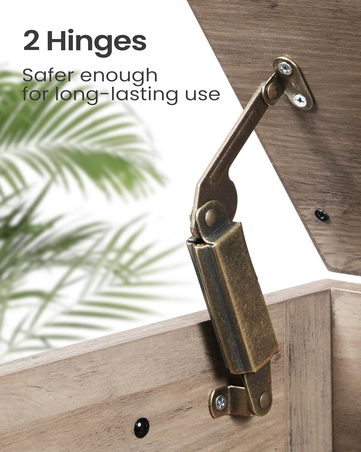- 【Stabilise and Safe】Made of premium particleboard, this wooden storage bench is much more pacify, the 2 safety hinges allow the lid to hover securely, prevent hand pinching, making it safer for daily use