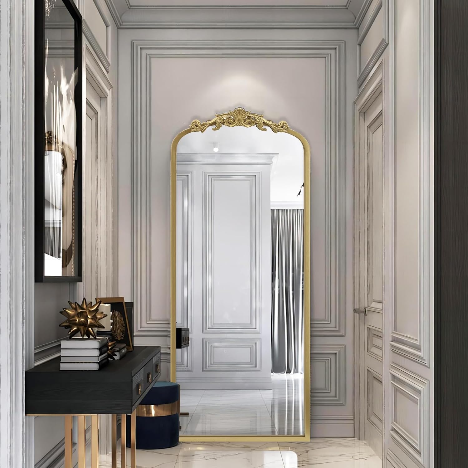 AIXI HOME Arched Gold Antique Full Length Mirror, 22"x65" Traditional Elegant Vintage Floor Body Mirror with Ornate Matel Frame, Baroque Inspired Home Decor for Bedroom/Living Room/Hallway