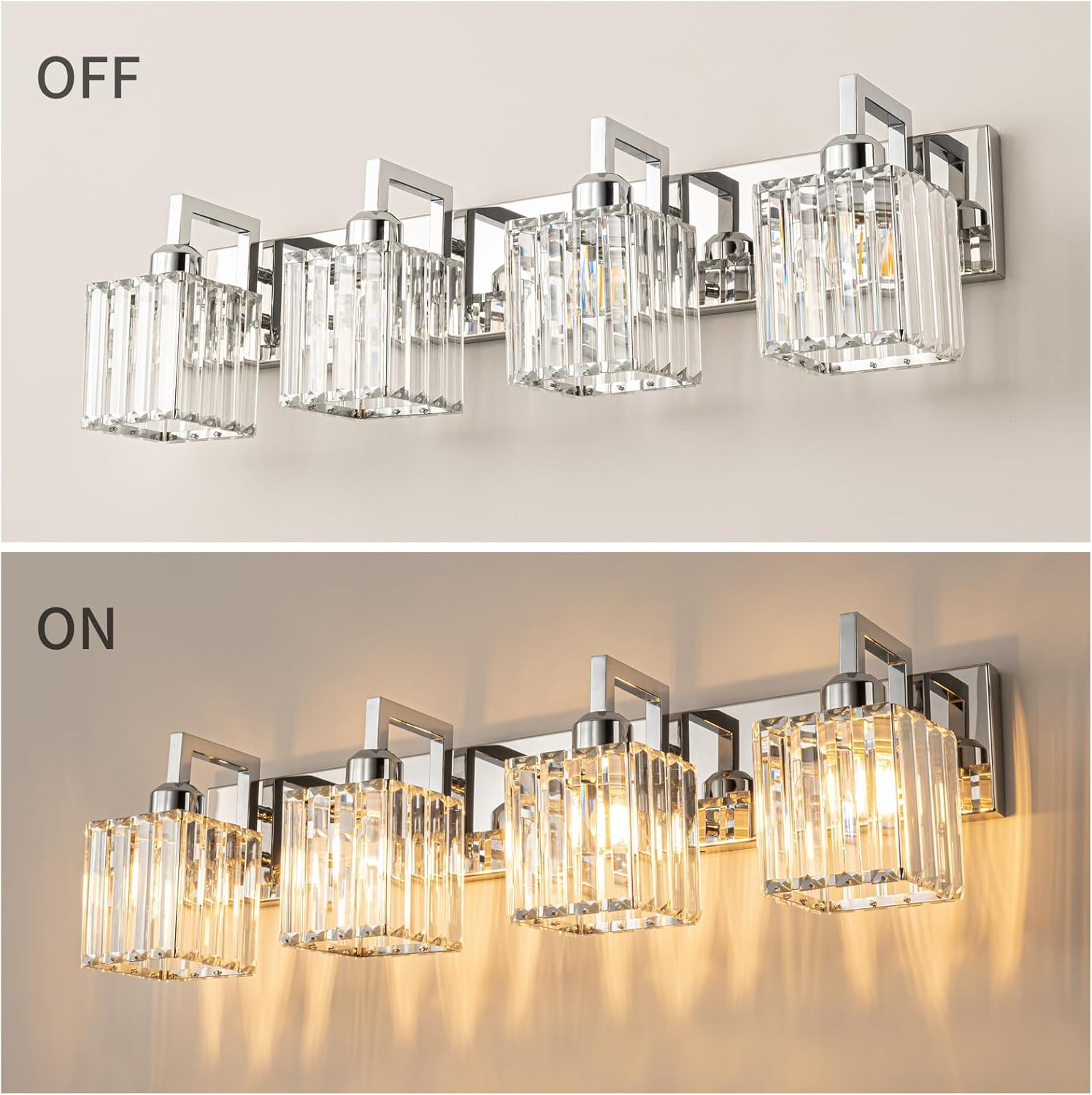 Modern Bathroom Vanity Light 4-Lights Chrome Crystal Wall Lamp Bathroom Modern Crystal Vanity Lighting