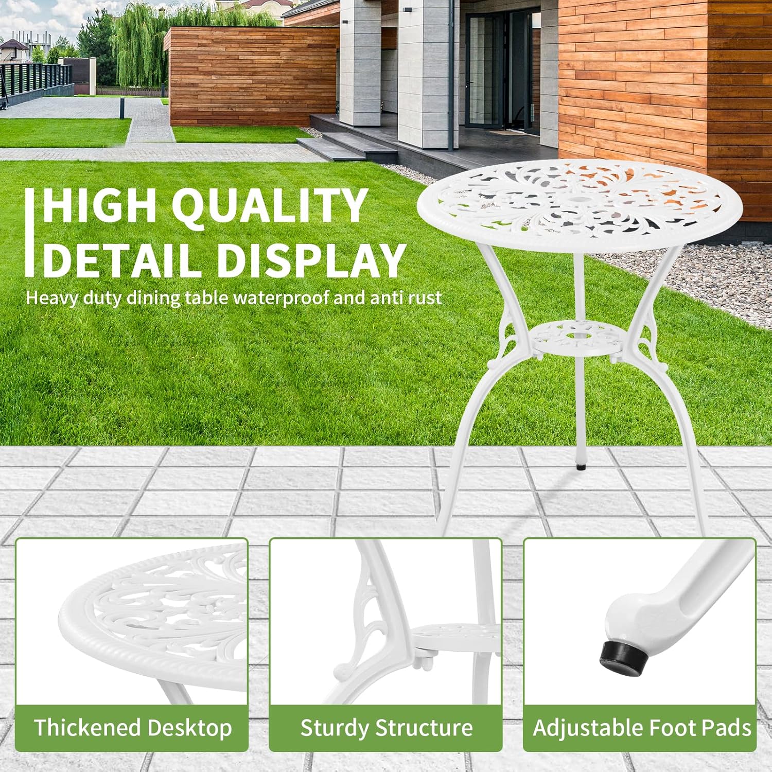 - 【Durable Bistro Sets】Outdoor Bistro set made of solid cast aluminum with resistant powder coated, which is waterproof and rustproof, anti-corrosion, anti-cracking and anti-oxidation. All screw fittings are rust-resistant. All weather cast aluminum frame ensure that this bistro set is durable to last for many years to come!