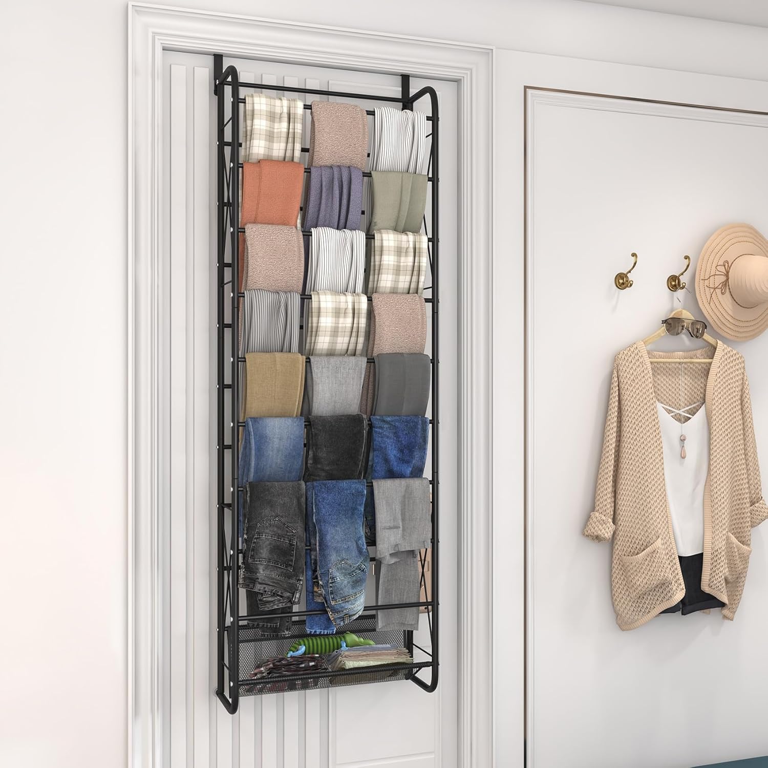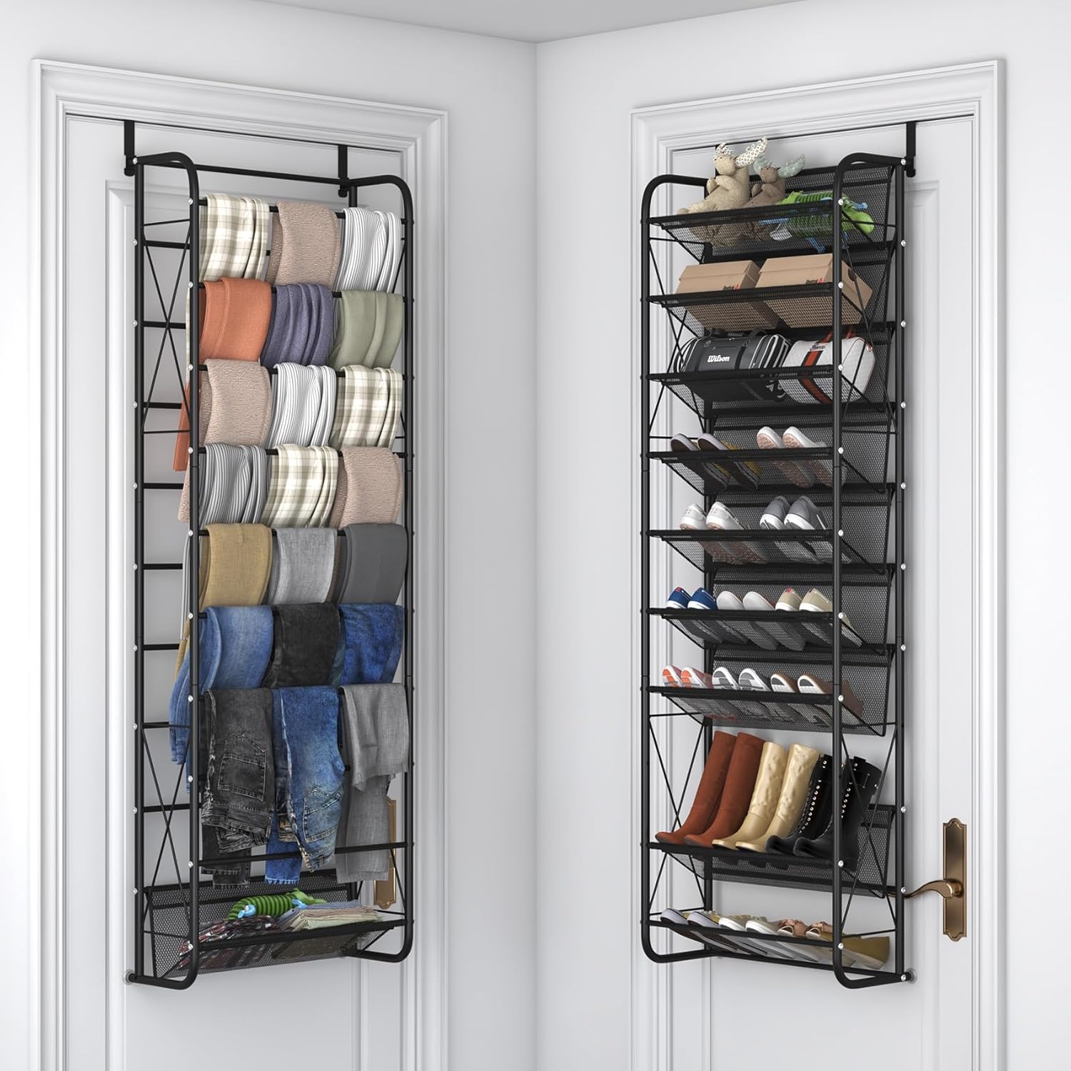 JSB 10 Tier Shoe rack Mesh fabric Over The Door Shoe Organizer X-structure Trouser hangers Closet Pantry Hanging Shoe Clothes Toys Storage Shelves (Black, 10 Tier)