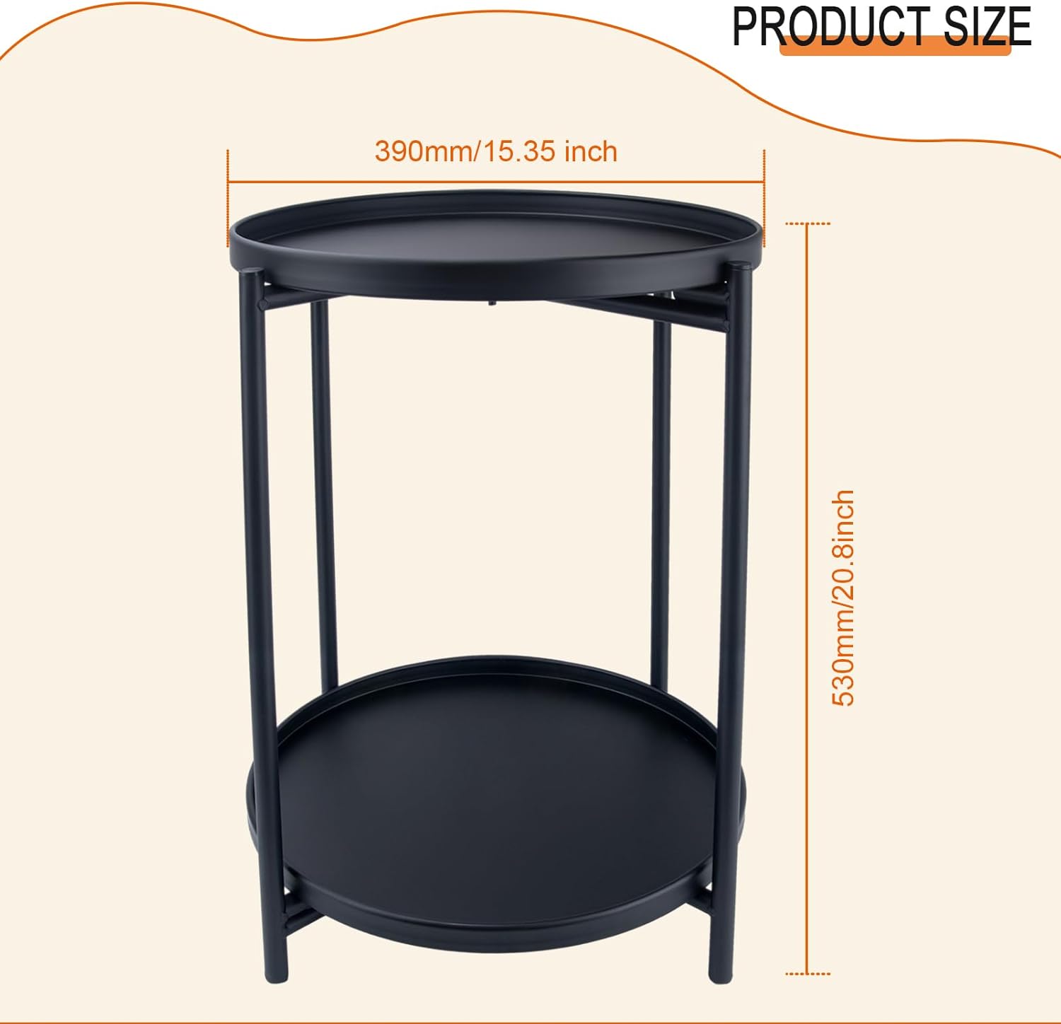 - 3-Easy to Assemble and Space-saving: With its folding design, this metal side table is easy to assemble and disassemble, making it perfect for small spaces. Its compact size also makes it easy to store when not in use,black side table