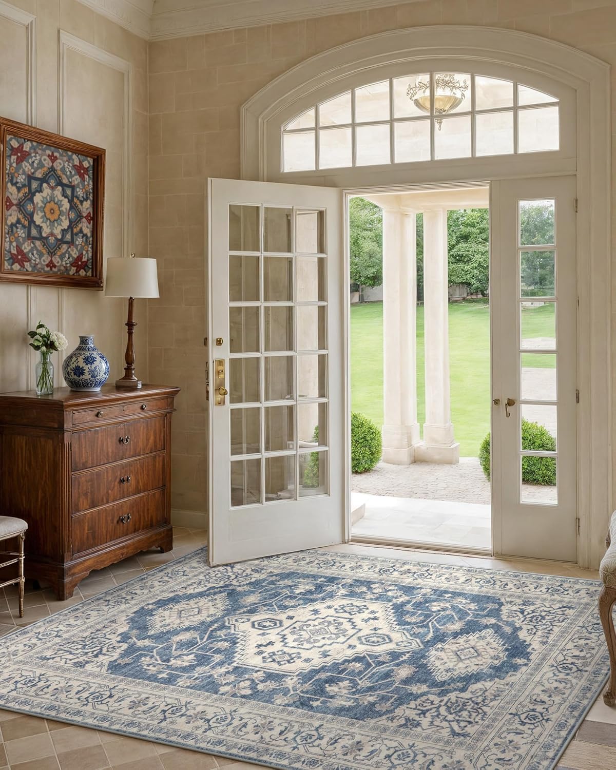 Lahome Oriental Area Rug, 3x5 Washable Rugs for Living Room Non Slip Entry Mat, Vintage Soft Pet Friendly Throw Carpet for Entryway Bedroom Dinning Room, Blue