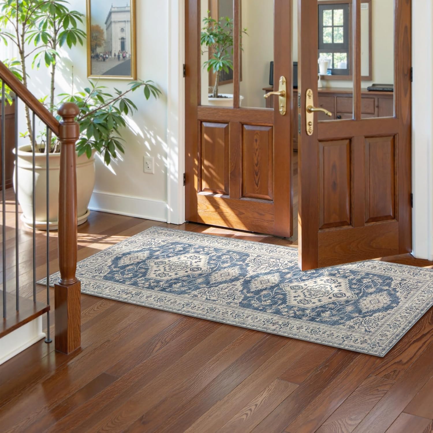 Lahome Oriental Washable Kitchen Runner Rug, 2x6 Carpet Runners for Hallway 6ft Non Skid, Vintage Soft Hallway Rug for Bathroom Bedroom Entryway, Blue