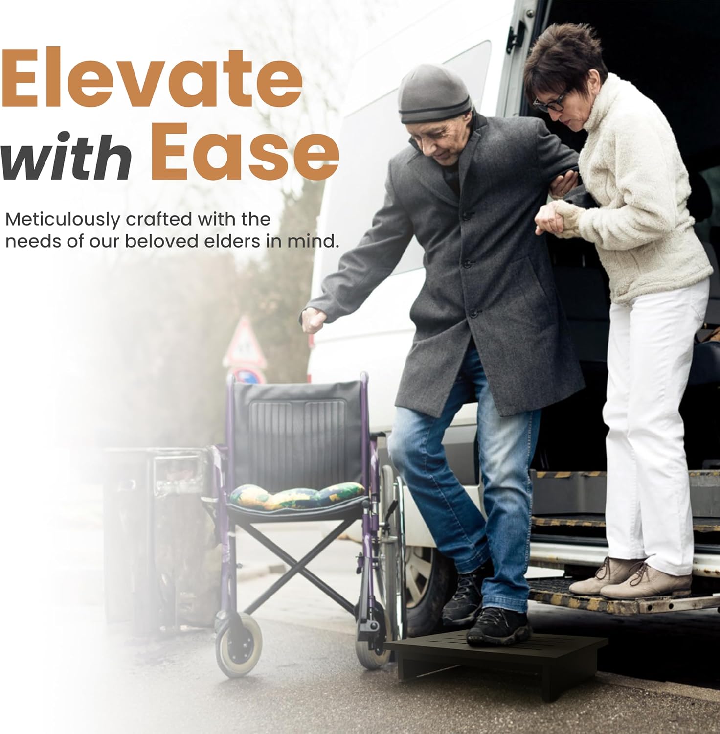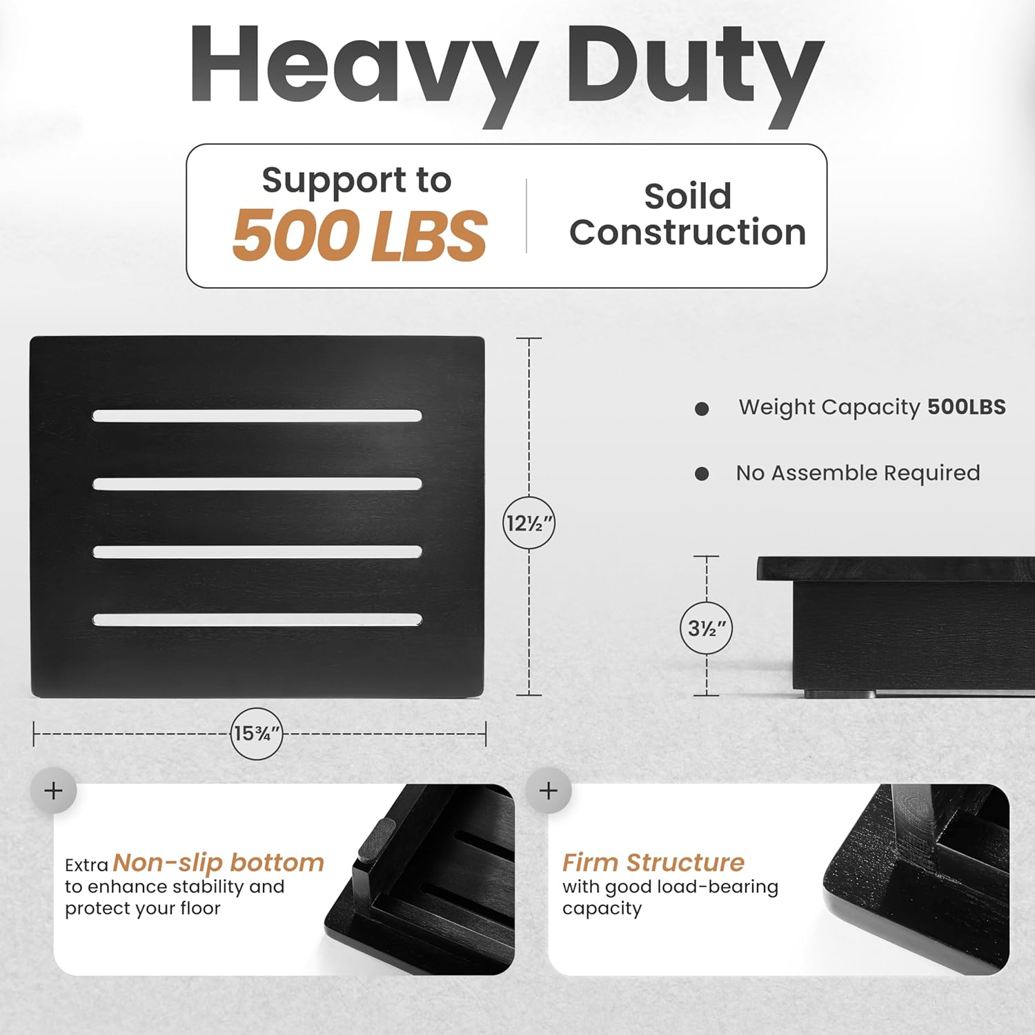 Holana 3.5" Wooden Step Stool for Adults (No Assemble Required)- 200 Lbs One Step Stools for High Bed Riser - Small Stepping Stool for Elderly, Seniors, Kid/Bathroom, Bed, Kitchen (Black)