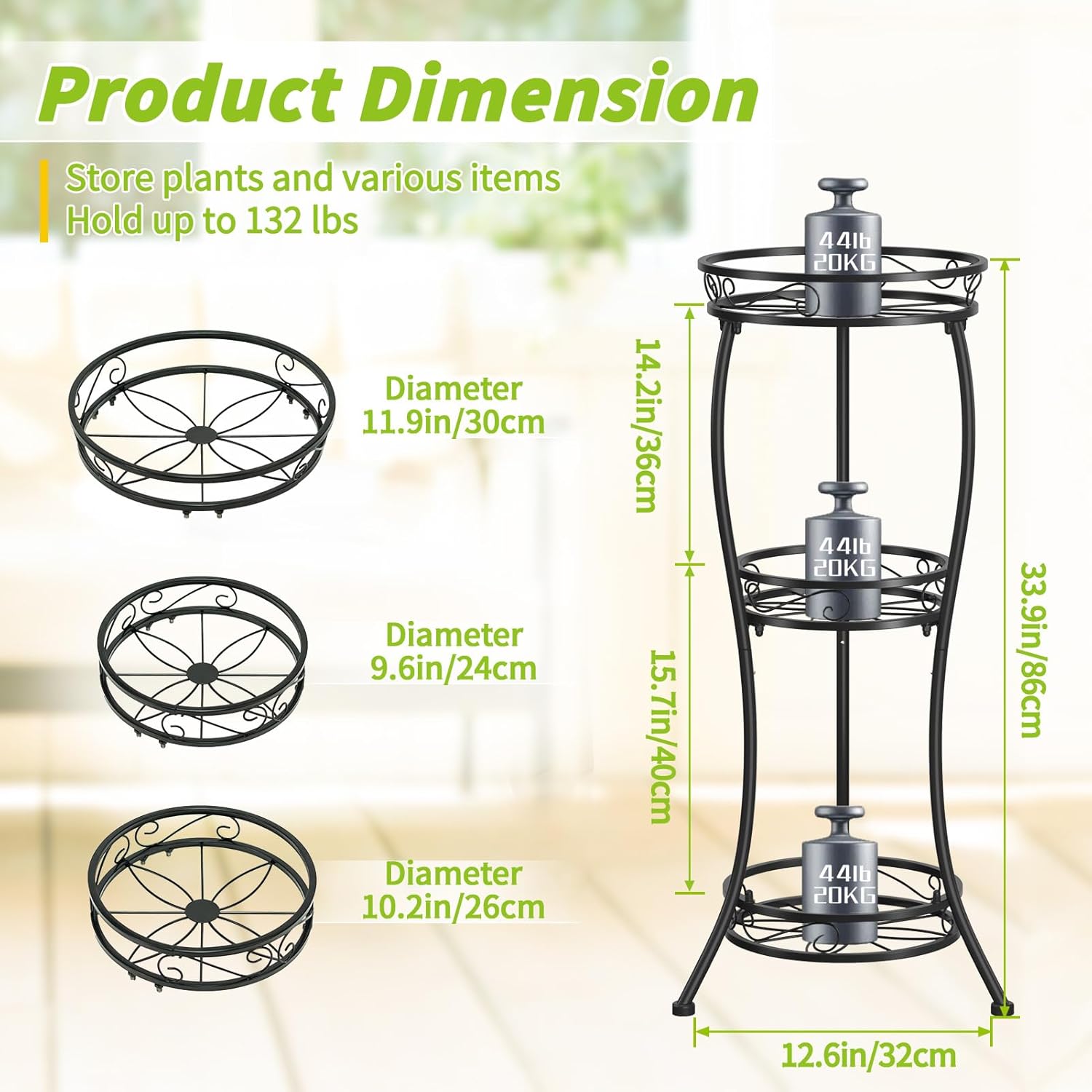 - 【Never Worry About Wobbles】Engineered with a reinforced iron frame and triangular bracing, the outdoor plant stands for patio secures heavy planters effortlessly. Its rock-solid foundation keeps plants upright, even with active pets or frequent household movement.