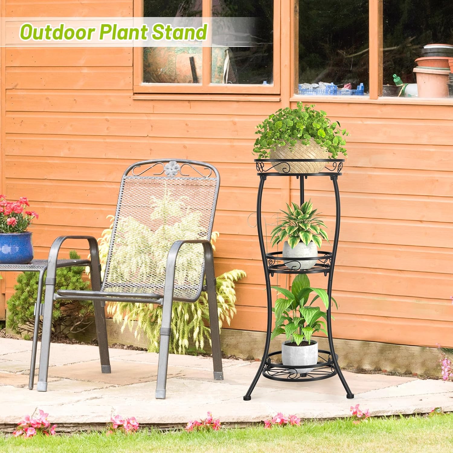KMOTASUO 3 Tier Tall Metal Plant Stand, 33 Inch Plant Stands Indoor Outdoor, Rustproof Iron Flower Pot Holder Display Rack for Corner Patio Garden Balcony Living Room(Black)
