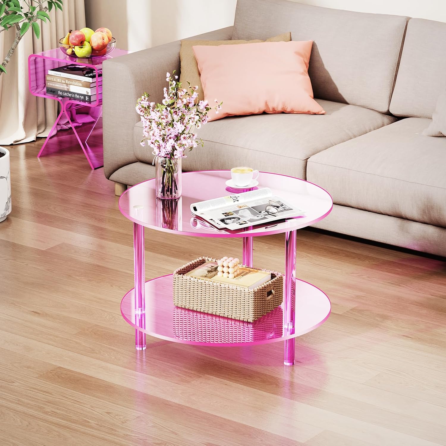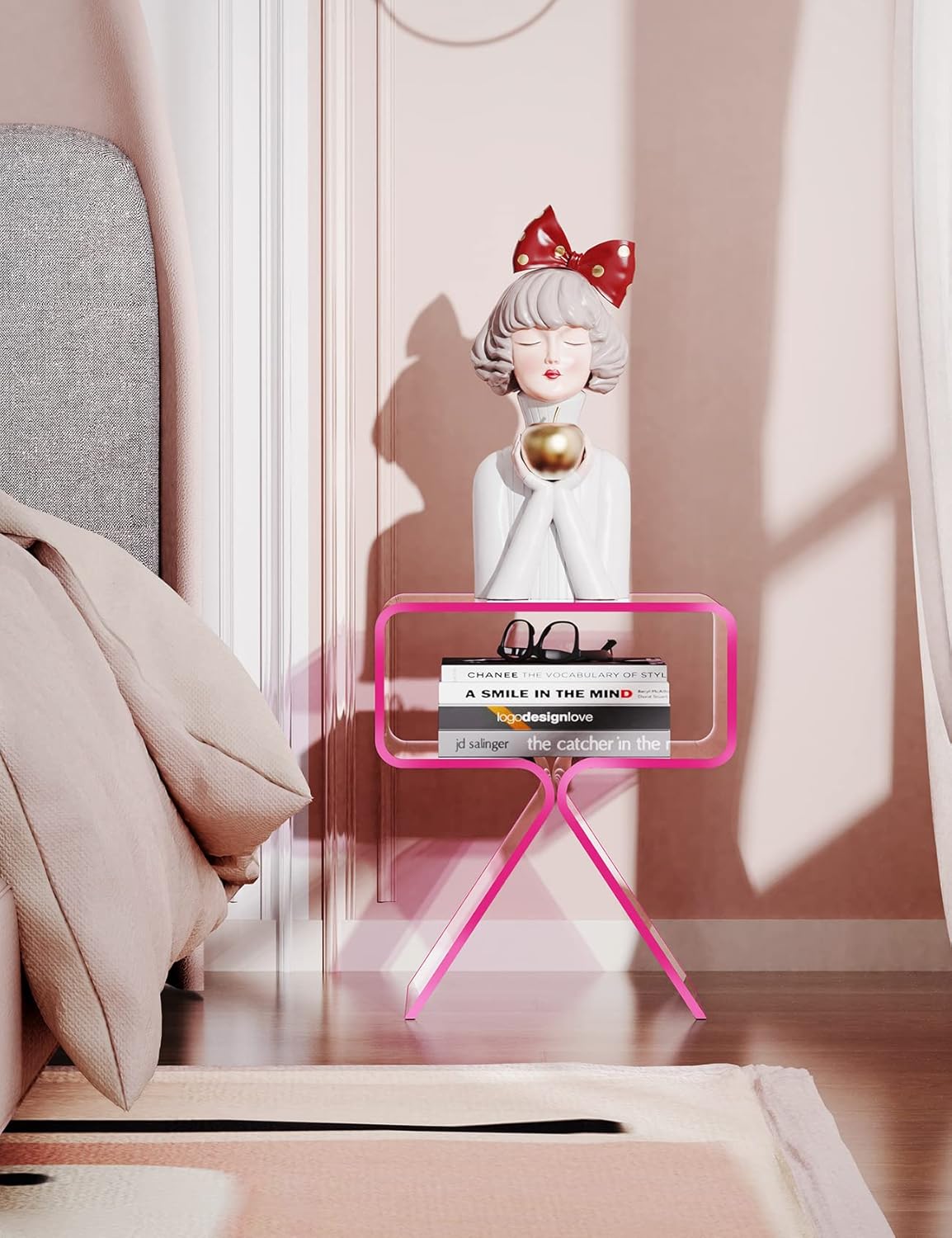 Acrylic Nightstand Side Table Modern Design Clear Home Decor Display End Table for Living Room (Pink)
