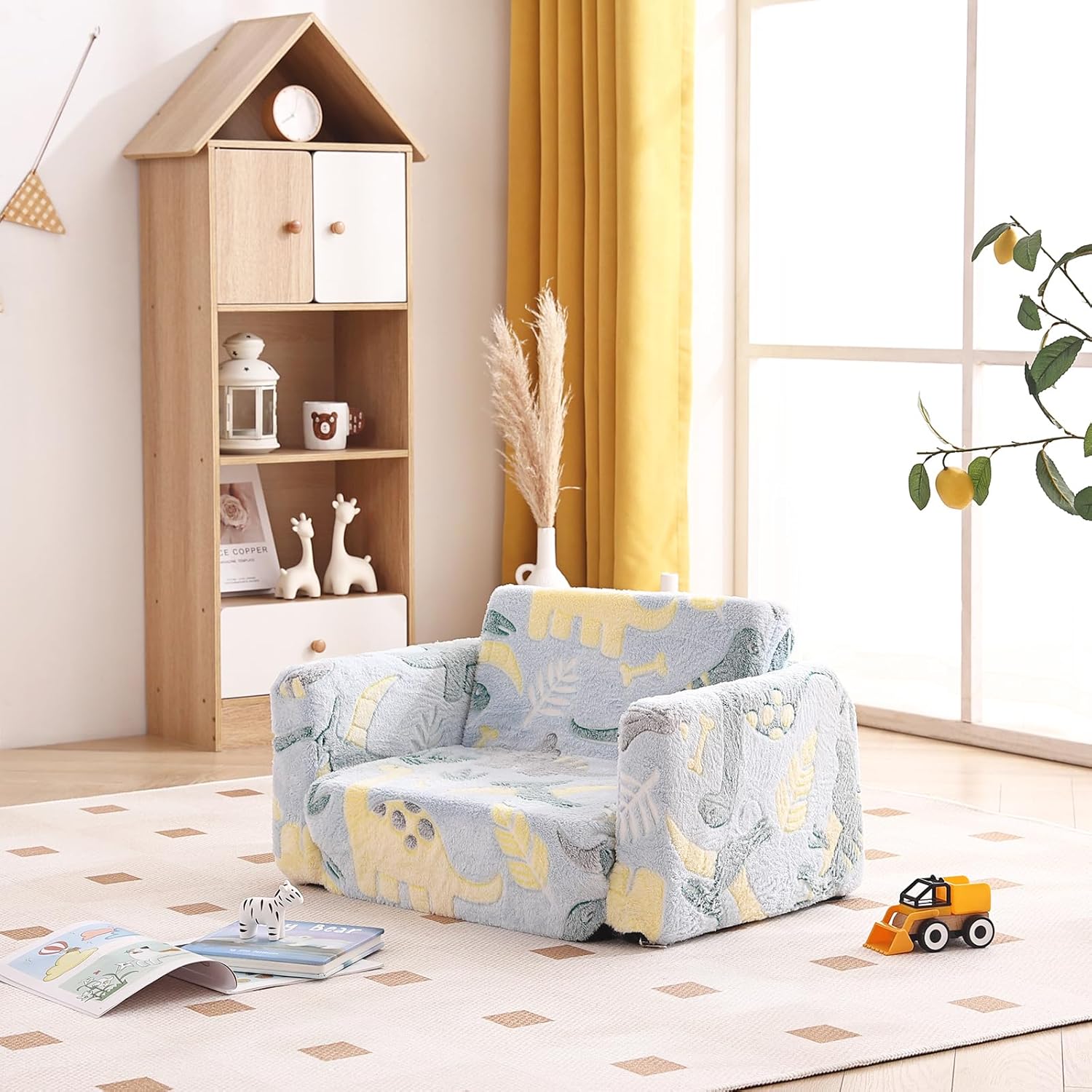 - 【Cartoon Pattern and Suitable for Any Environment】: The children's couch has a childlike pattern and emits light at night, just put the kids' sofa under bright lights or sunlight for 15-30 minutes. Whether it's placed in a living room, playroom, or bedroom, it blends seamlessly with the surroundings.