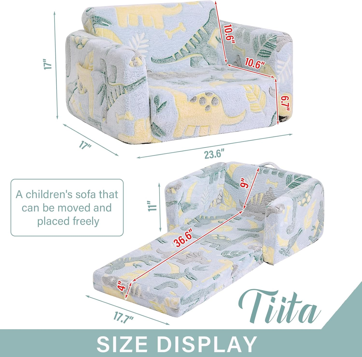 - 【Foldable Kids Sofa】: Children's sofa offer the flexibility to adapt to different situations. With a simple fold, they can effortlessly convert between a traditional sofa and a lounger, accommodating various seating preferences or transforming playtime into relaxation time.