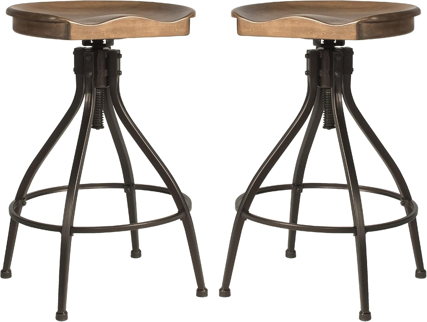 Hillsdale Worland Backless Metal Adjustable Height Stool with Wood Saddle Seat, Set of 2, Brown