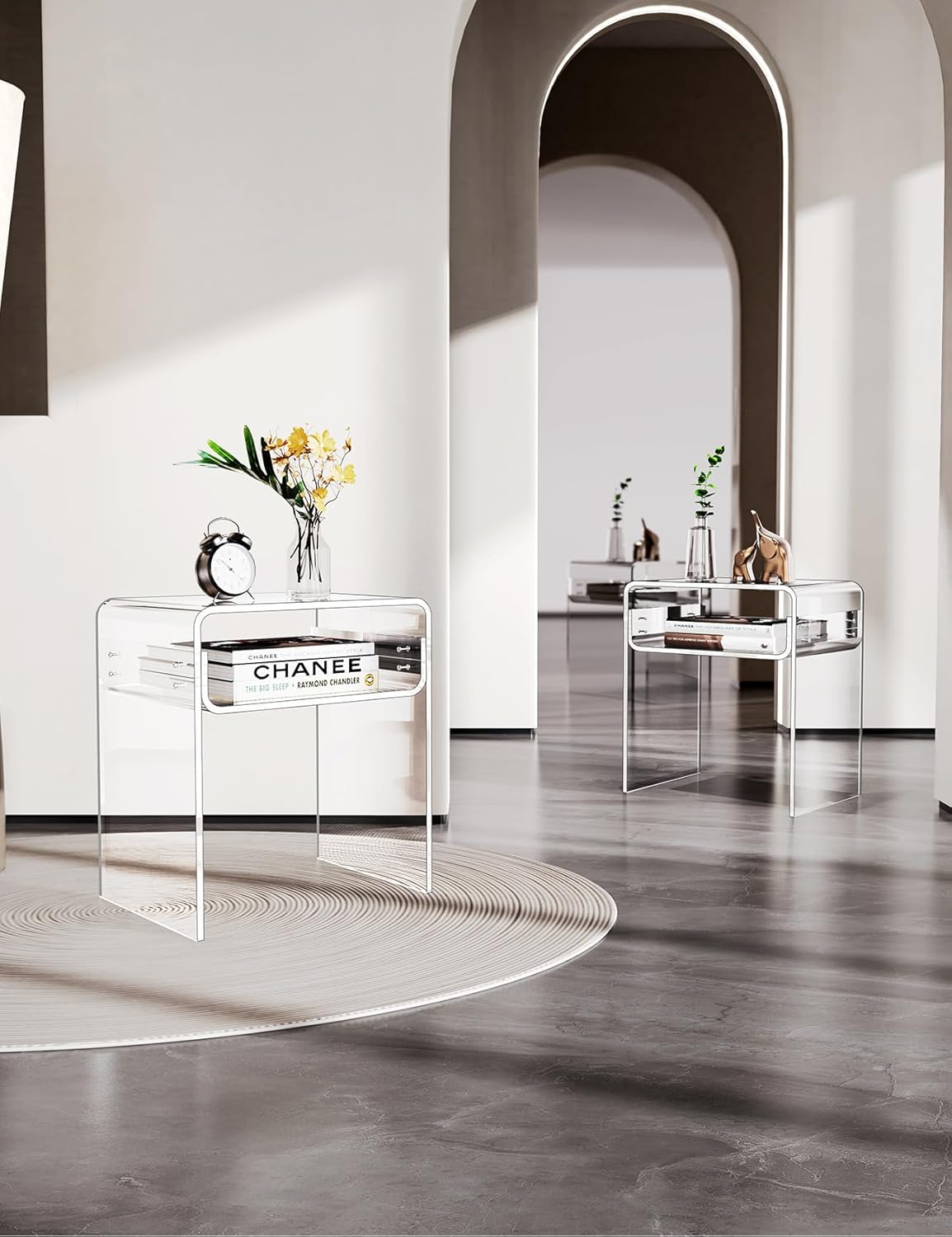 Clear Acrylic End Table 2-Tier Bedside nightstand for Living Room Bedroom Home Decor (Clear Double)