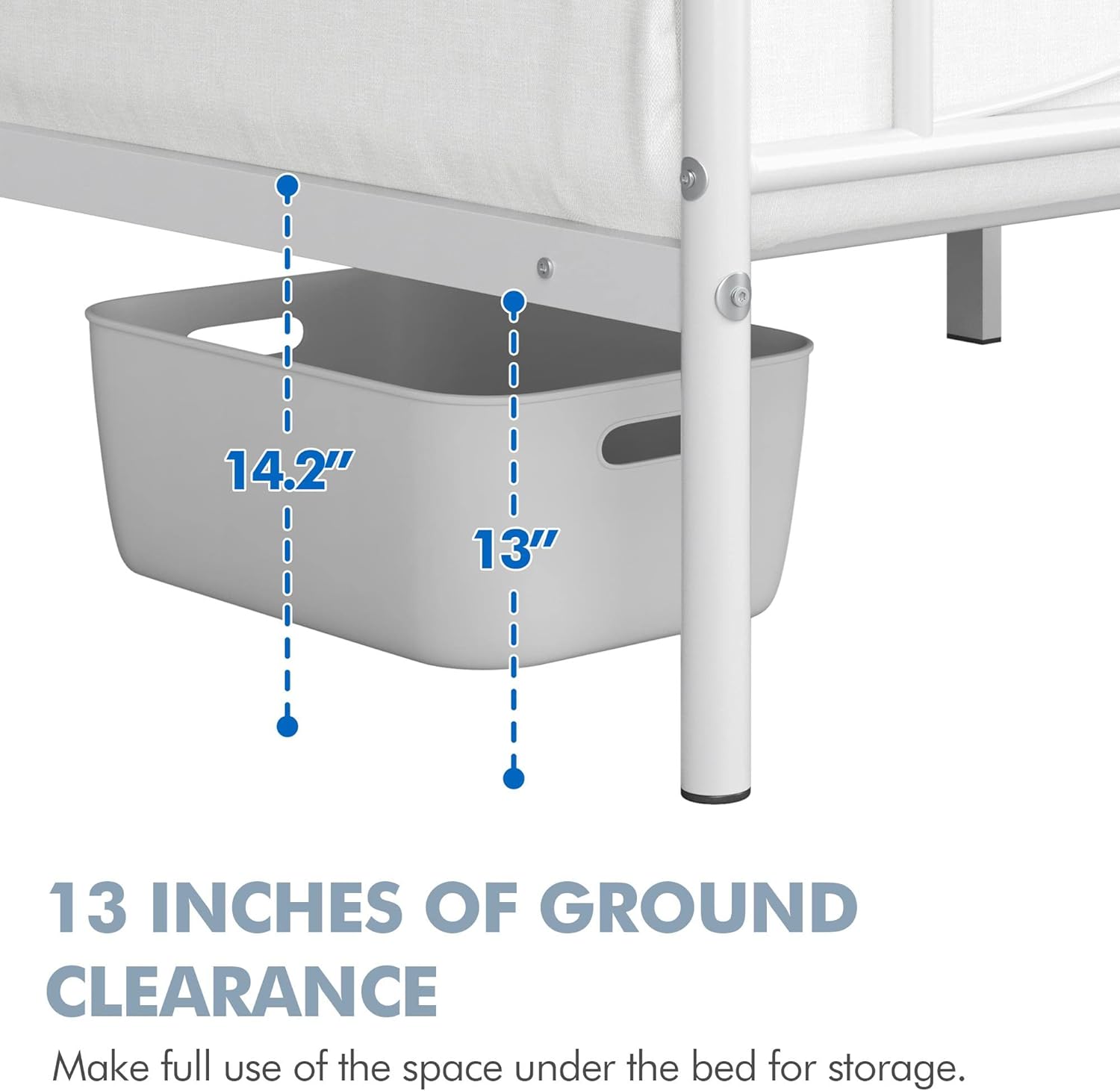 - 13’’ UNDER-THE-BED STORAGE SPACE: The iron twin platform bed frame stands 13’’ off the floor, allowing easy access to the boxes and baskets underneath, also making you effortlessly get into or out of the bed, which is perfect for sleepers of all ages.