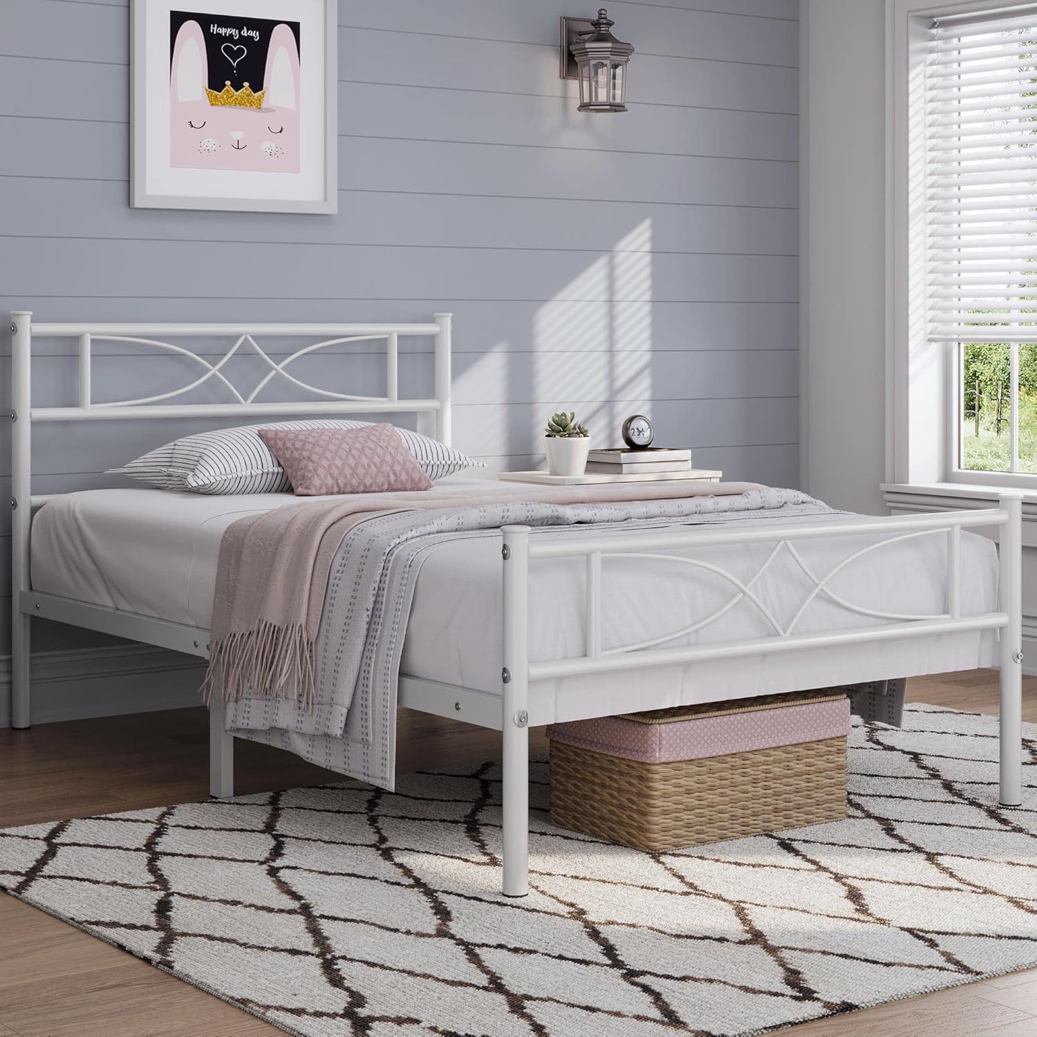 Yaheetech Metal Twin Size Bed Frame, Platform Bed Frame, Mattress Foundation with Curved Design Headboard & Footboard, NO Box Spring Needed, Heavy-Duty Support, Easy Assembly, Twin, White