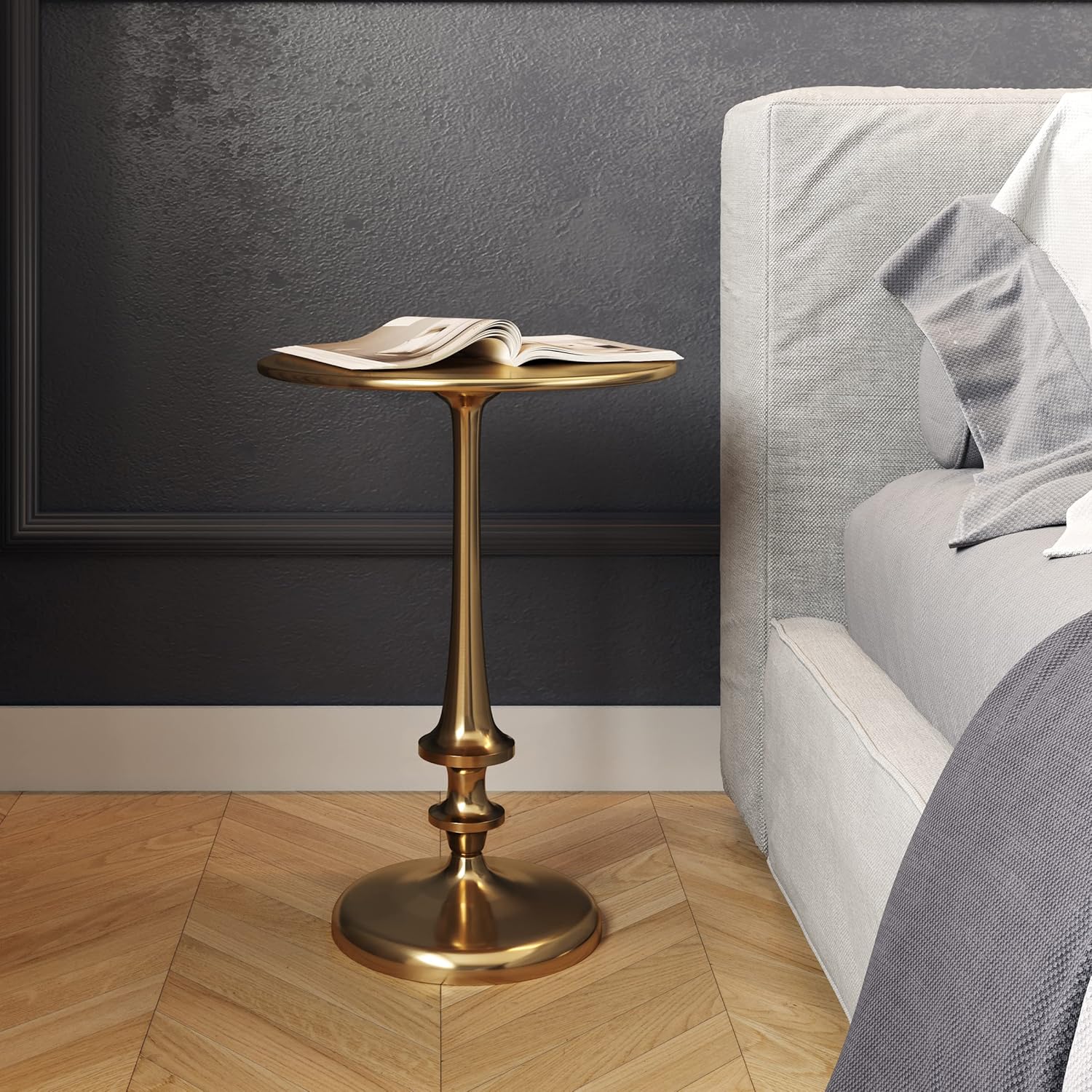 - VINTAGE STYLE - The small side table is a beautiful classic addition to your home décor. The round table features an antiqued brass finish and makes a fabulous complement to your couch, loveseat, chair, or bed.