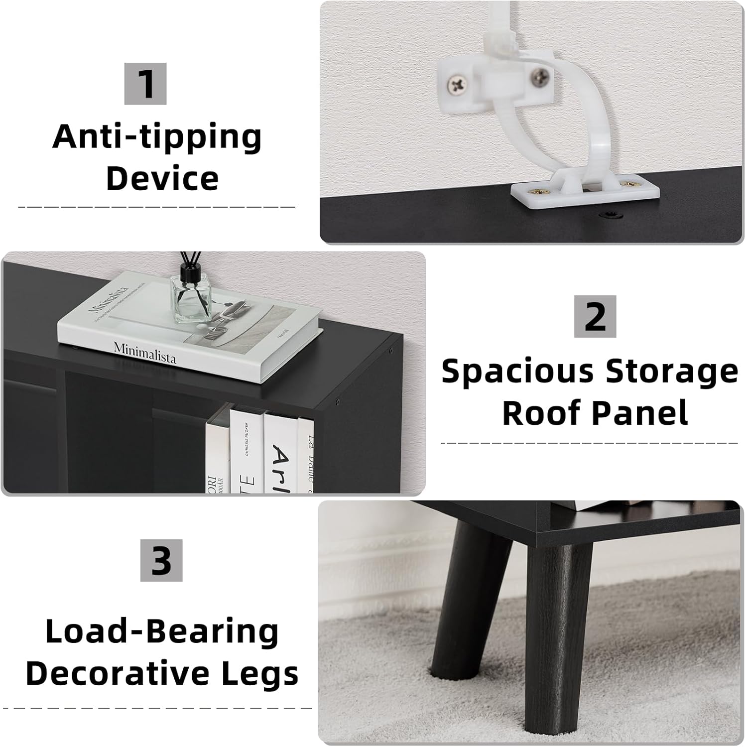 - 【Stronger Stability】 The durable 3 tier bookshelf is made of sturdy high-quality wooden board. High-quality materials can ensure that wooden bookcase are sturdy .We have equipped the sturdy book shelf with 5 sturdy moisture-proof plastic legs, with the central vertical leg providing stronger weight-bearing capacity for the modern bookshelf and further enhancing its stability.