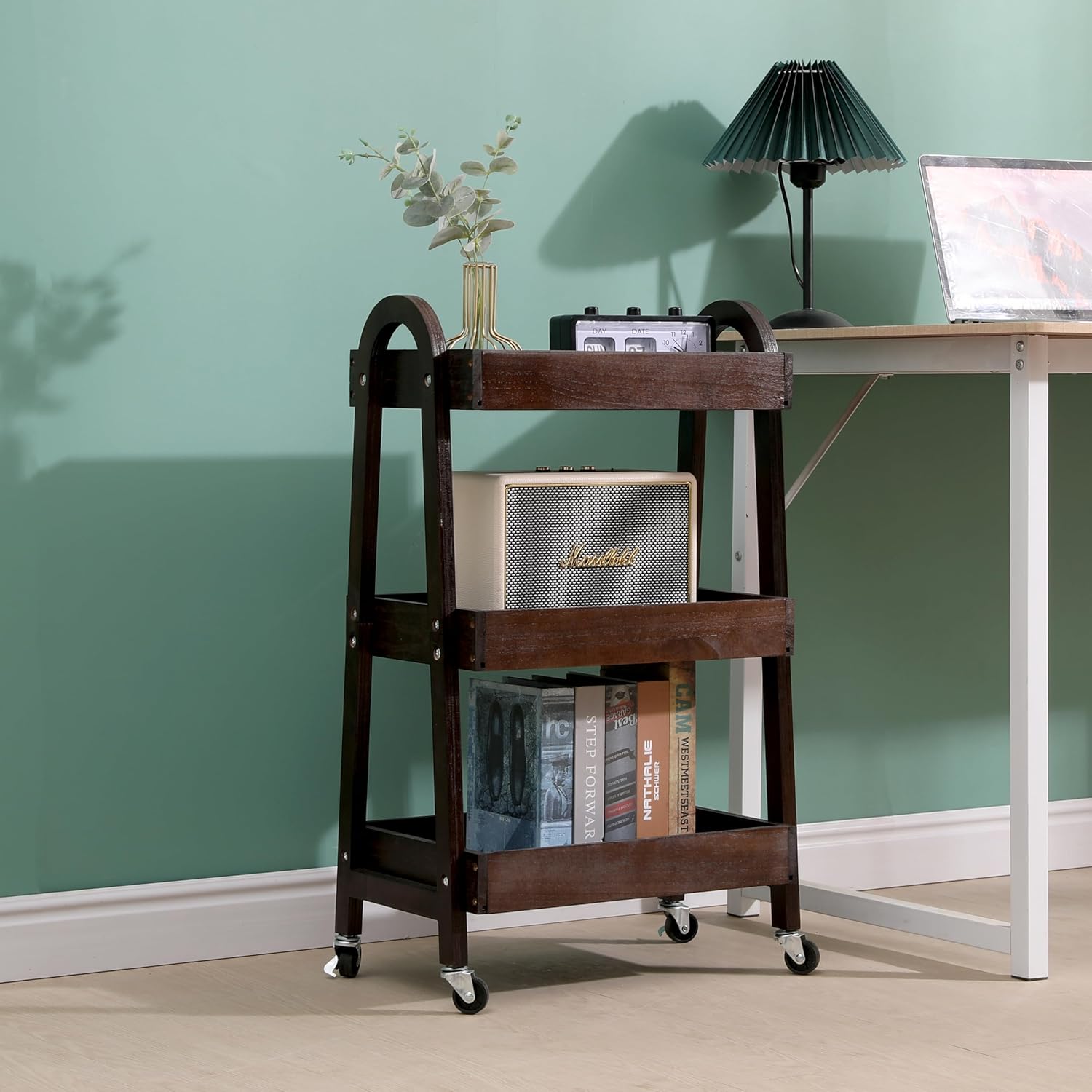 - 【Wide Usage】Wooden cart on wheels is easy storage and transportation as a art cart, bathroom cart, bar cart, craft cart,baby room cart,organization rack,serving cart, storage shelves, tools cart, etc.It is best gift of baby birthday,happy wedding anniversary ,baby shower souvenir gifts,bridal shower return gifts.