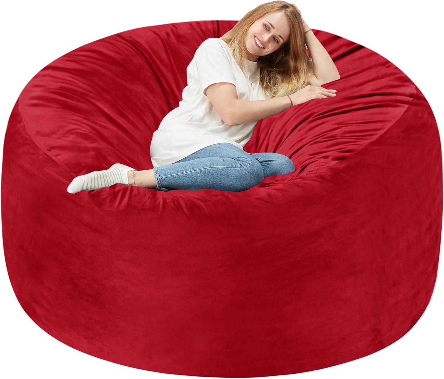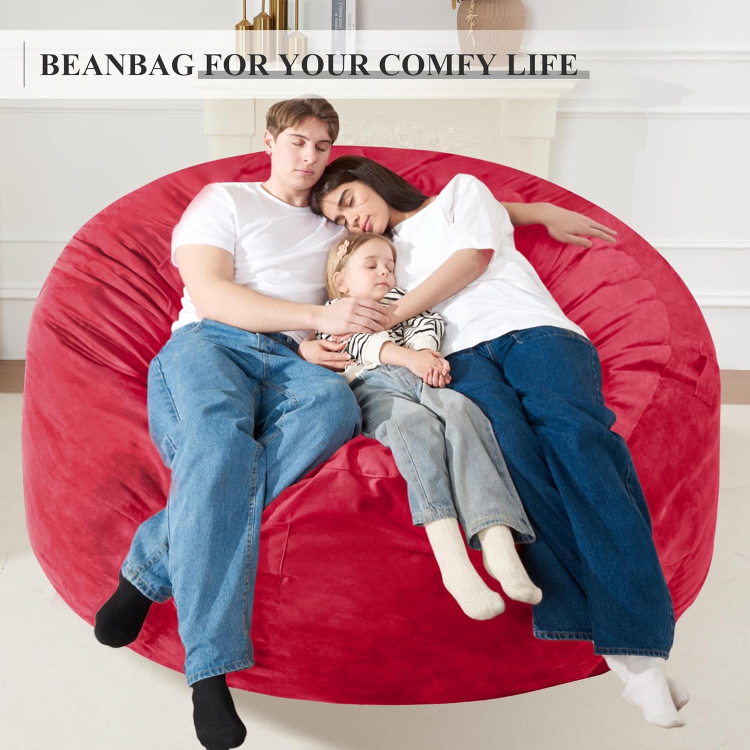 Homguava 6FT Bean Bag Chair Giant BeanBag with Memory Foam Filled, Large Bean Bag Chairs for Adults, Adult Bean Bag Chair with Dutch Velvet Cover for Living Room Bedroom-Red