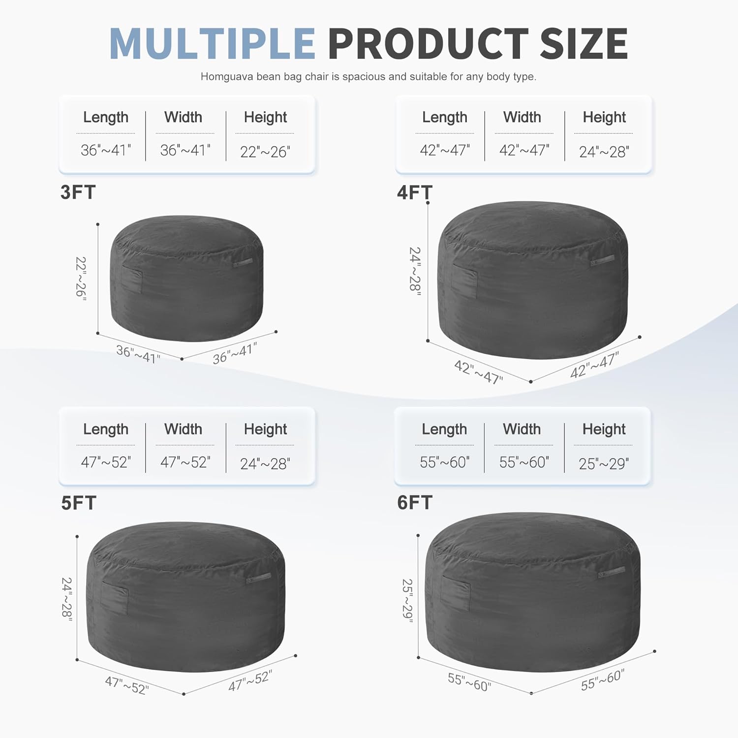 - Multifunctional Usage: Homguava memory foam bean bag chairs for adults can be used as a chair or bed for entertainment or rest, allowing you to unlock new modes of home leisure. Great for gaming and studying in bedrooms, for student dorm rooms or even family movie night, game night. There are also a variety of colors to choose from and these simple bean bag chairs are the good room decoration