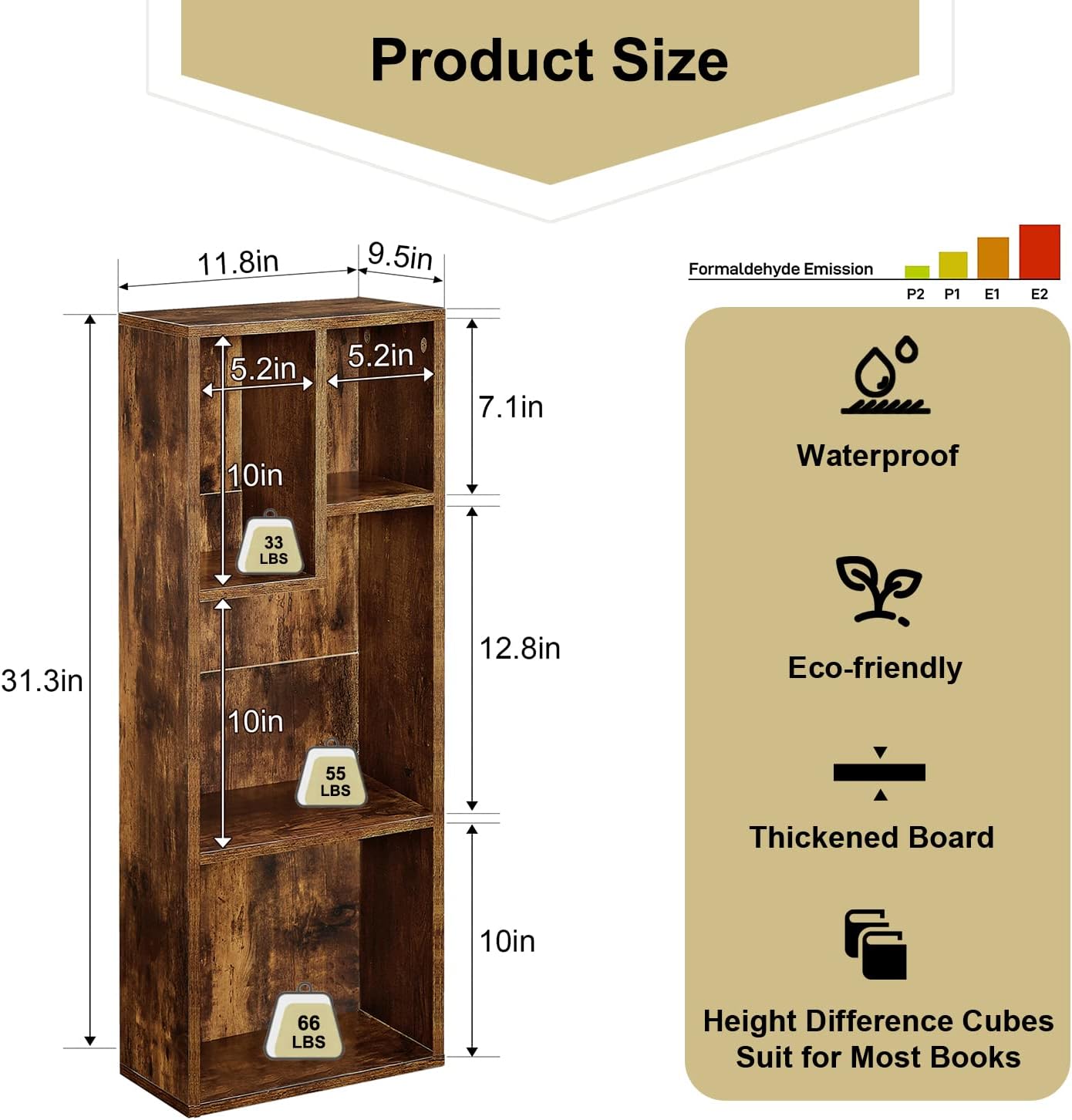 - 🎃【Small Changes,Big Difference】: With Height Difference Shelves, This Bookcase, Unlike Those with Fixed Height, Matches Books that Height Up to 12.8 Inch,Suit for Most Books.