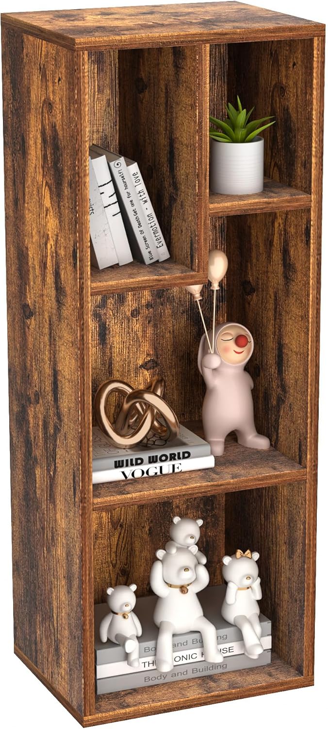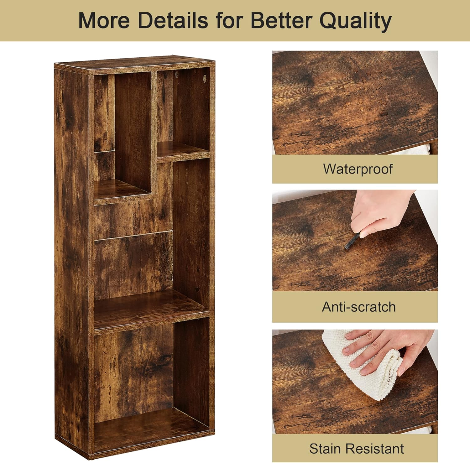 VECELO 3-Tier Small Bookcase, 4 Cube Bookshelf with Height Difference Shelves for Most Books, Modern Floor Standing Unit, Each Shelf Hold Up to 66 LBS for Living Room Bedroom, Rustic Brown