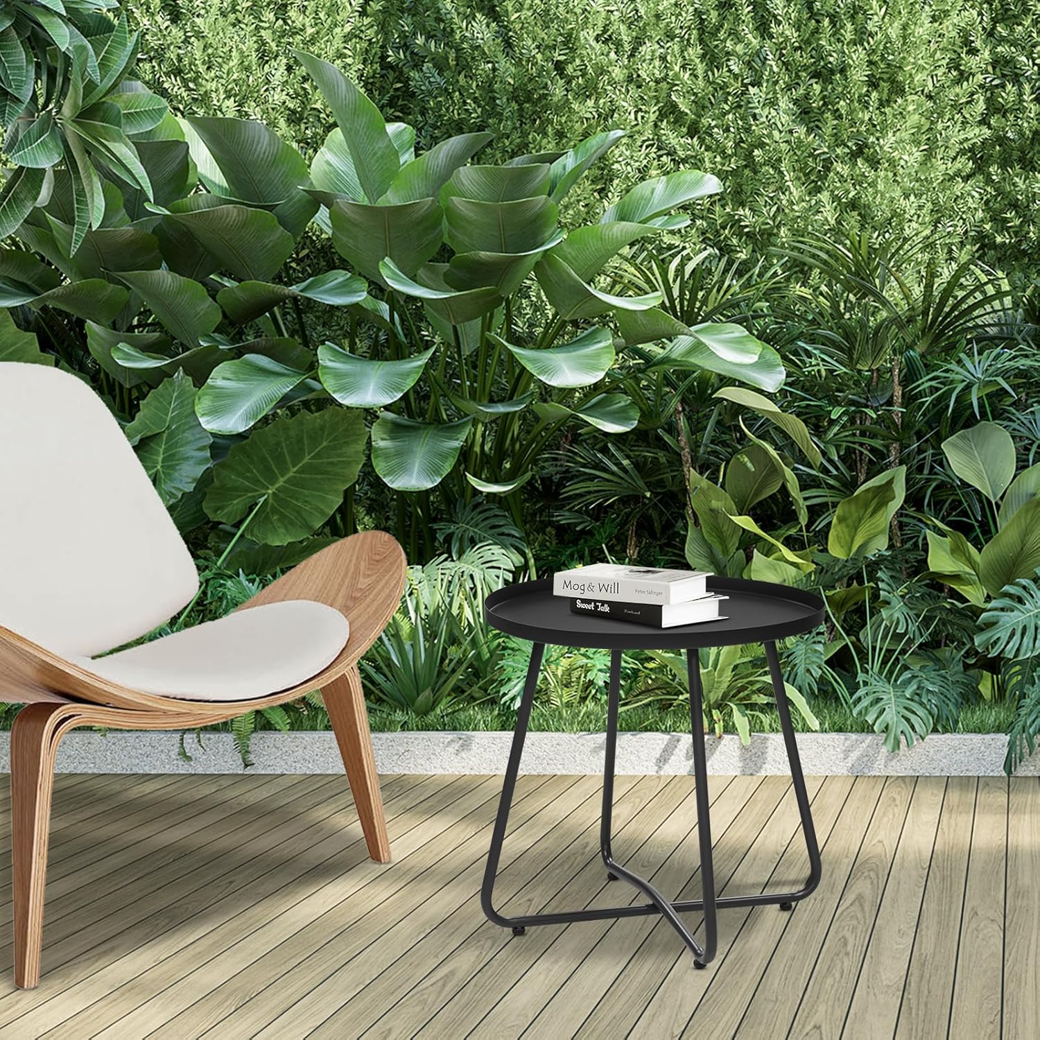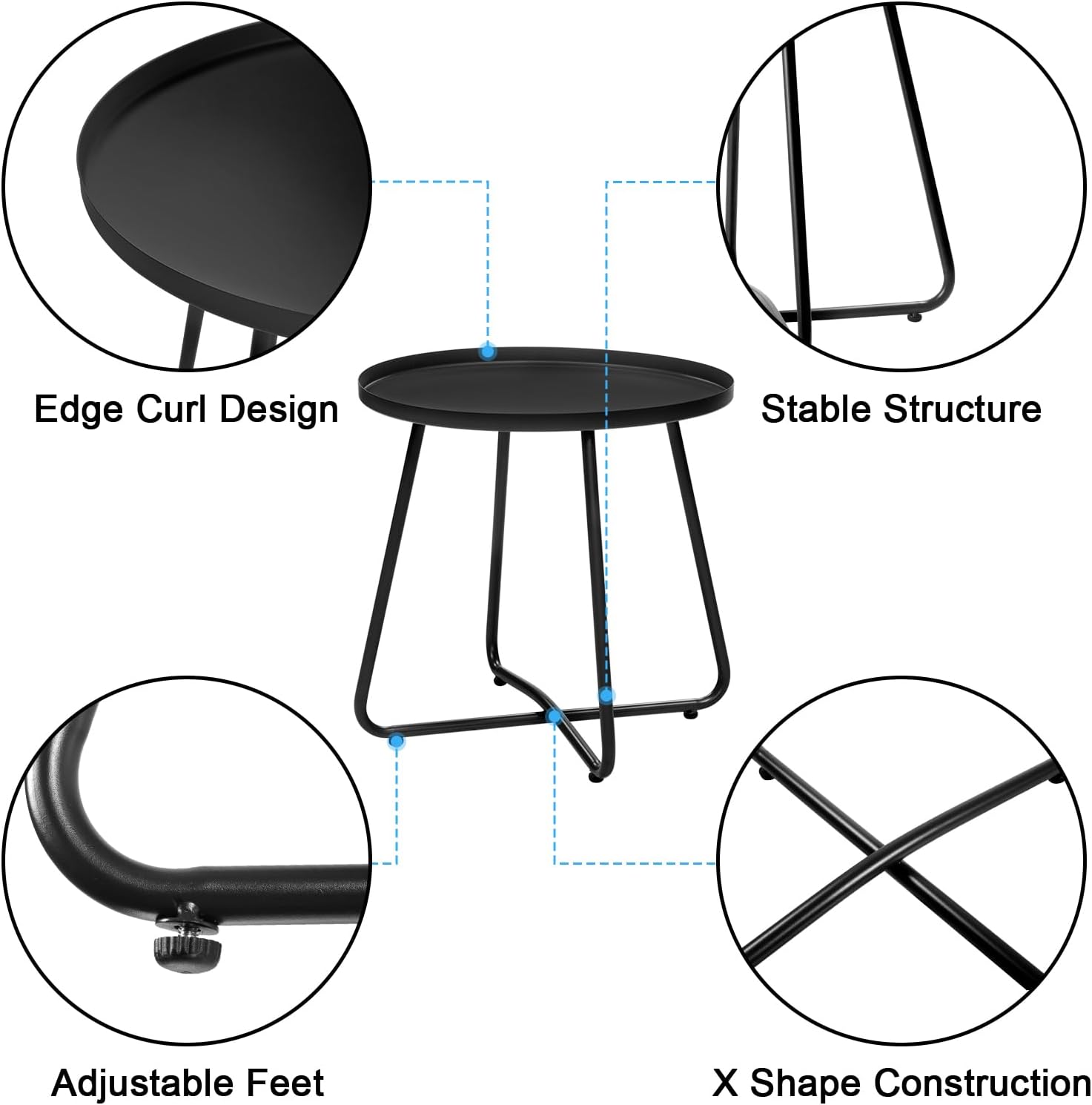 Dia.17.7ins Steel Round Coffee Table, Steel Tray Table, Side Table, Outdoor and Indoor Use, Weather Resisitant, Patio, Balcony, Garden, Backyard (Black)