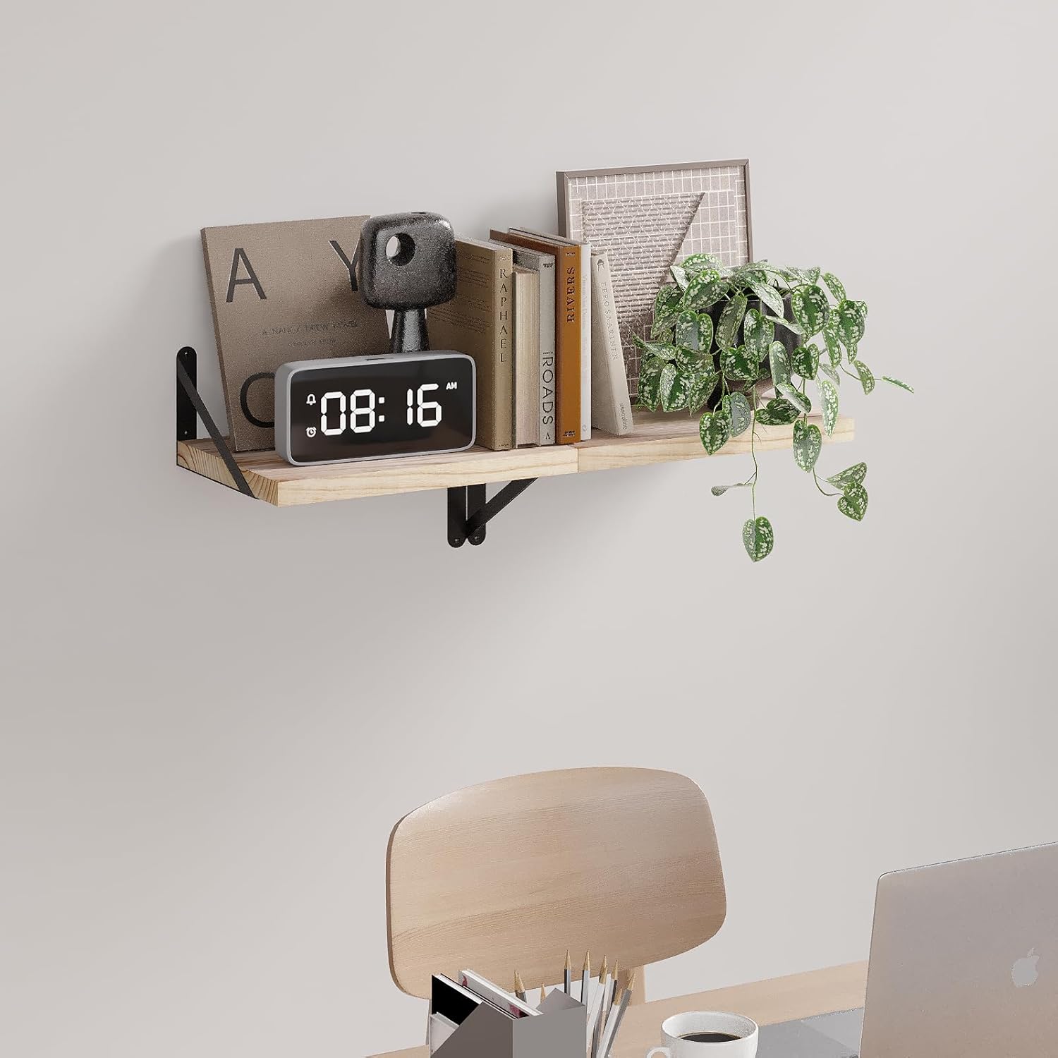 - Solid Wood Wall Shelves: Crafted from solid wood and durable metal brackets, you can confidently display items such as books, photos, plants, or knick-knacks, each shelf supporting up to 40 lbs