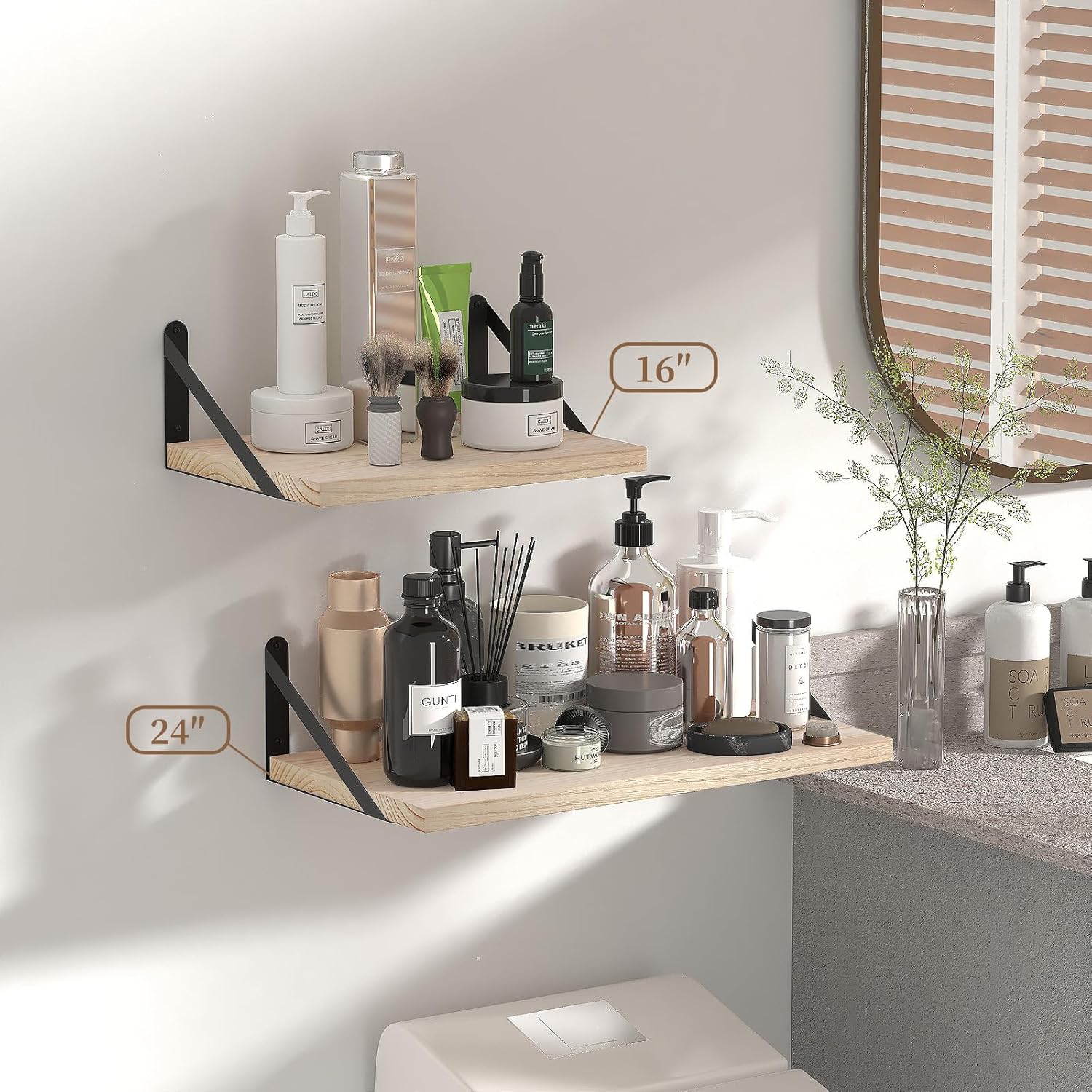 - Diverse Floating Shelves: The matte metal bracket can be installed either on the top or bottom of the shelf, providing various display options to suit your needs; Ideal for bathroom, bedroom, living room, kitchen, farmhouse, office, and dorm